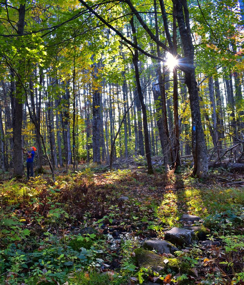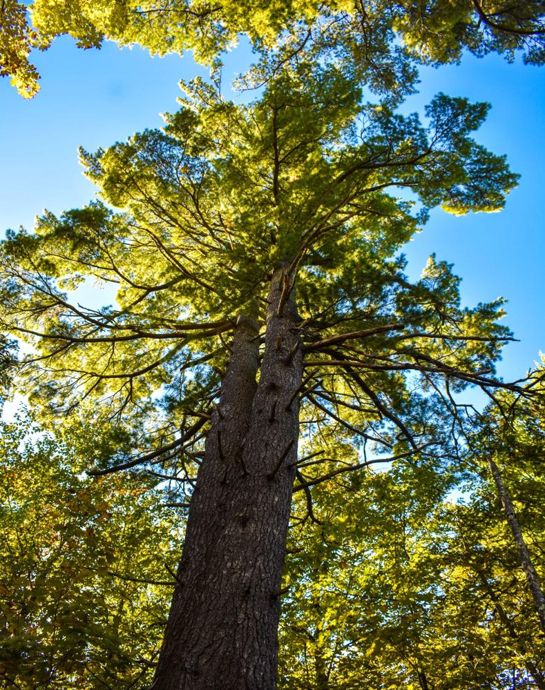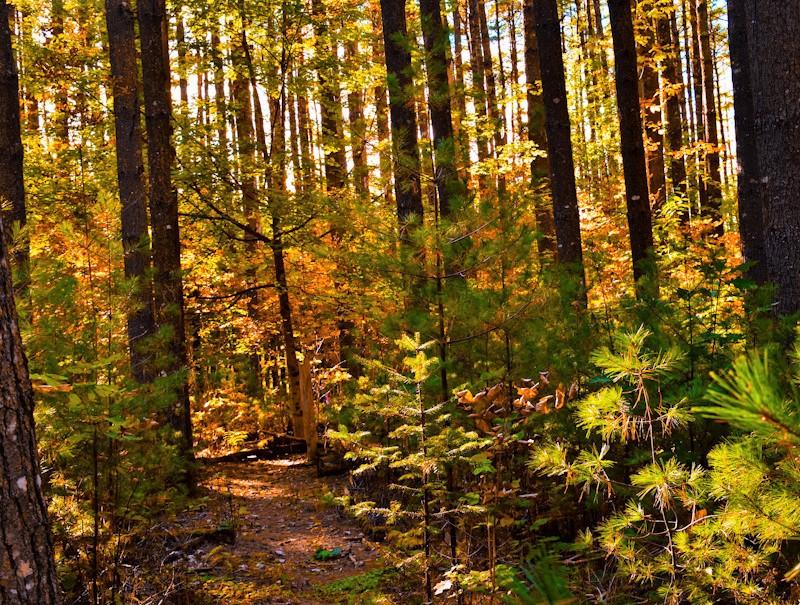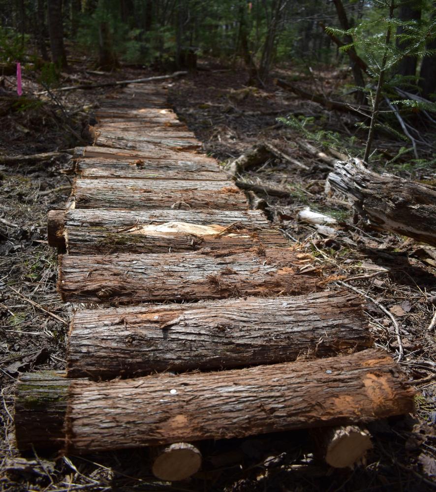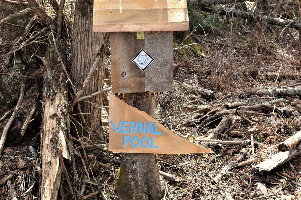 Visitors to Jacobs’ Pines are treated to a variety of plant communities including the towering pines, mixed hardwood and conifer stands and cedar groves. In spring the chorusing of wood frogs and spring peepers can be quite loud at the woodland pond, a likely vernal pool where frogs and salamanders gather to breed. From the trailhead kiosk, follow the blue-blazed trail through the harvested area and into the pines. A sign and sign-in box will welcome you to the trail network.