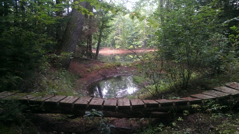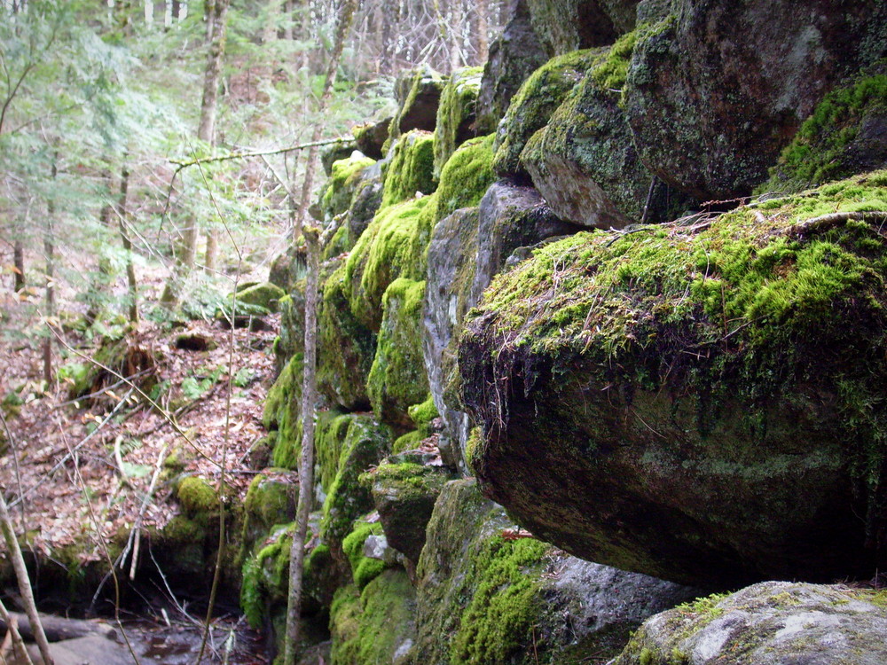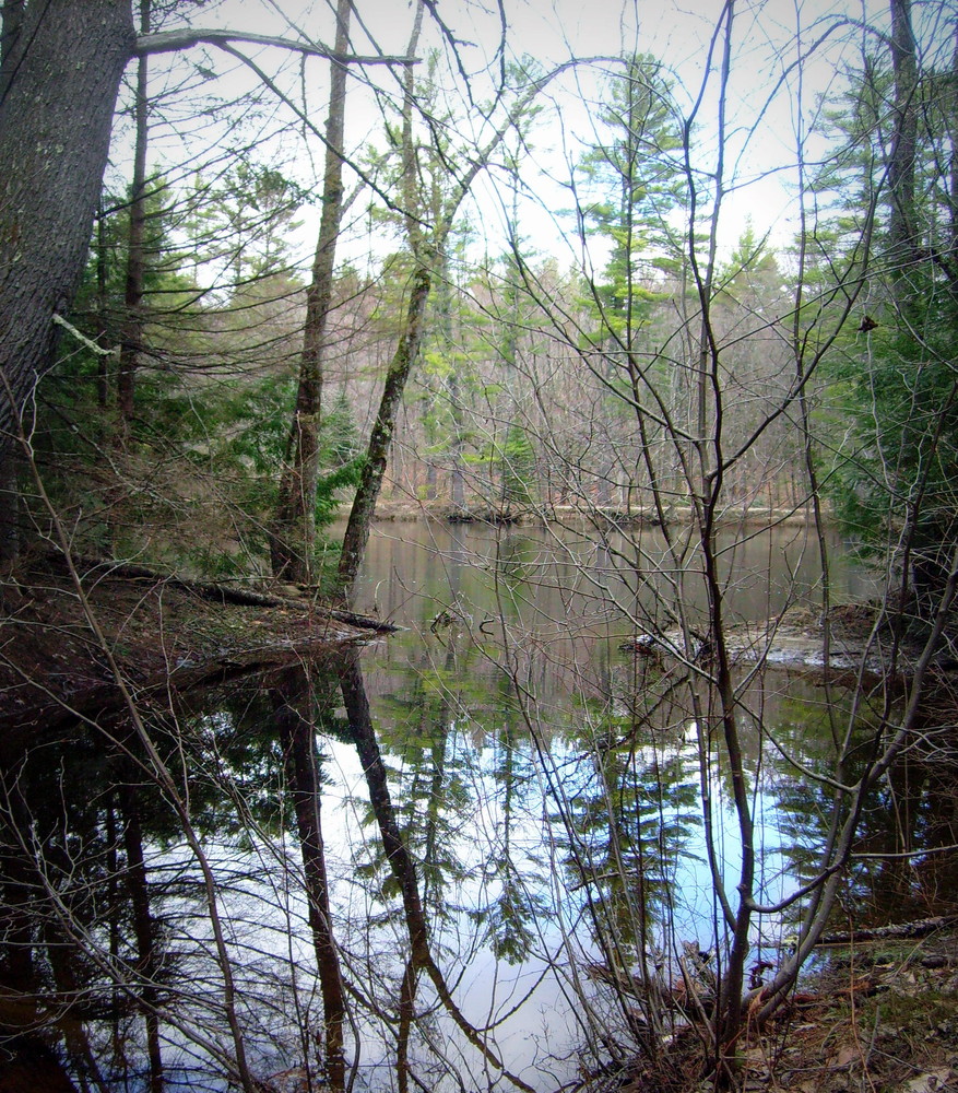 To enter the 20-acre preserve, go 250 feet down the right-of-way on Olives Way (as described under Trailhead), and at the sign, angle to the left and walk an additional 500 feet. A stonewall marks the boundary line of the property. A signpost points to the loop path. Small wooden signs with a turtle logo mark the trail. It takes approximately 45 minutes to walk the loop trail that passes the old dam, Pease Brook, and the Saco River, and then returns through the woods.
