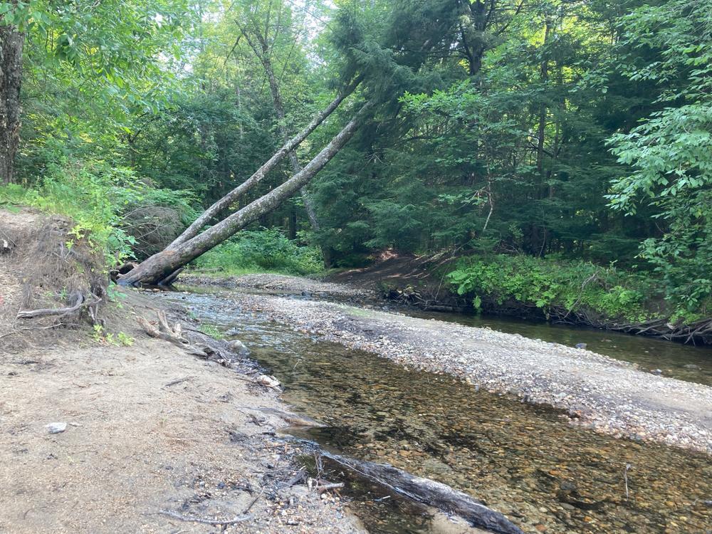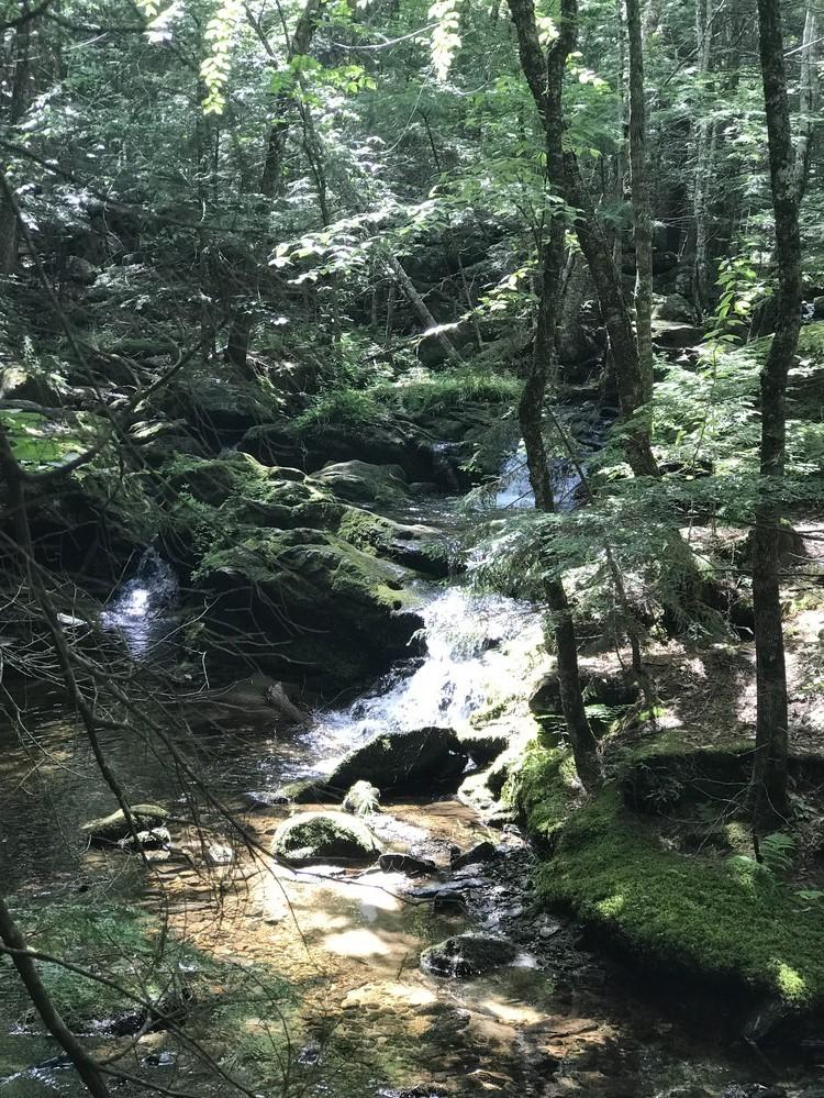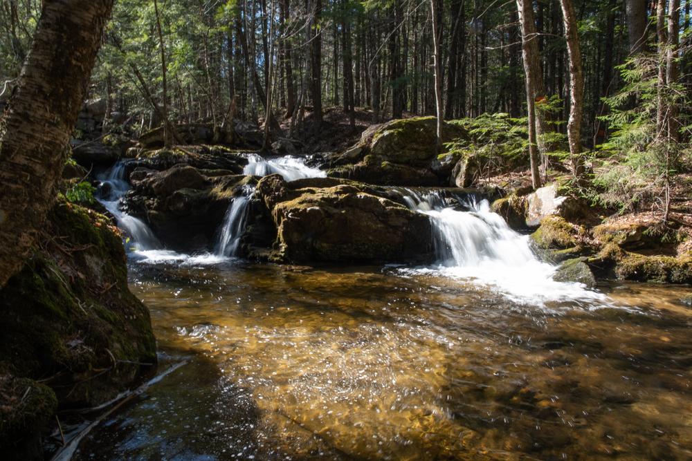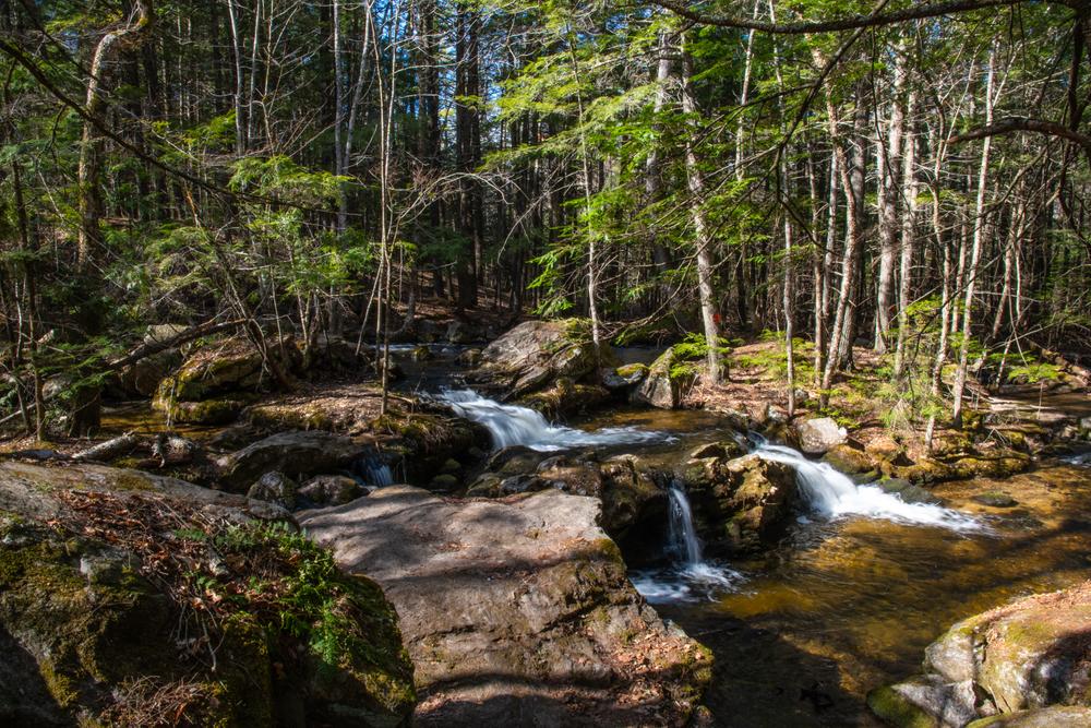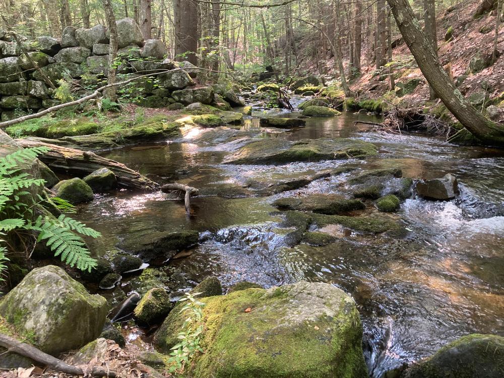 To enter the 20-acre preserve, go 250 feet down the right-of-way on Olives Way (as described under Trailhead), and at the sign, angle to the left and walk an additional 500 feet. A stonewall marks the boundary line of the property. A signpost points to the loop path. Small wooden signs with a turtle logo mark the trail. It takes approximately 45 minutes to walk the loop trail that passes the old dam, Pease Brook, and the Saco River, and then returns through the woods.