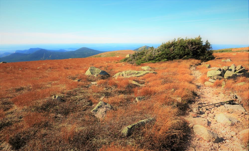 The route follows the general line of the old Tracy and Love Trail of 1887. It leaves the Northwest Basin Trail at 1.2 miles from Russell Pond, follows Tracy Brook south, then breaks above tree line and climbs over the long, exposed North Peaks and ends at Hamlin Peak. It can be undertaken as a day hike from Russell Pond, particularly combined with the Northwest Basin Trail to form a loop. However, this loop makes for a very long day (approx. 10 hours round trip) and should be attempted only by strong parties.
