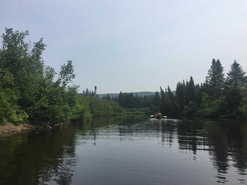 From the put-in, the Kennebago River slowly winds through uninhabited forests. The river is mostly flatwater, except for one short section of quickwater and rocks found about 0.1 miles after the put-in. It is best run by cutting to the far left before going back to the middle of the river to avoid the rocks on the sides. While this section has no big waves or strong current, it requires some quick maneuvering. The rest of the 3.75 mile paddle is in calm water around many meandering bends.The take-out is just beyond the ME-16 bridge on the left side of the river at a sandy beach.