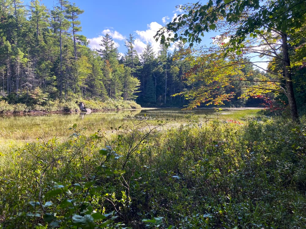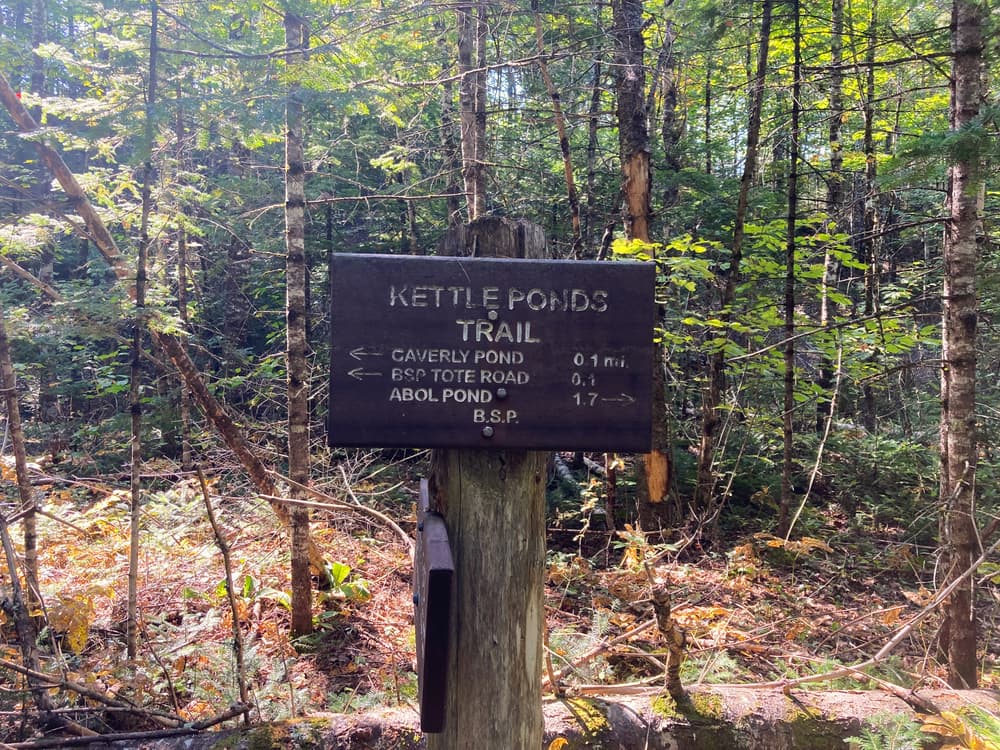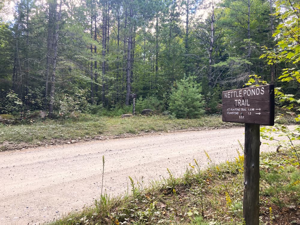 The Kettle Pond Trail parallels the Park Tote Road in this area. The trail can be hiked as a short, leisurely day hike or combined with several other area trails to make a longer hike.