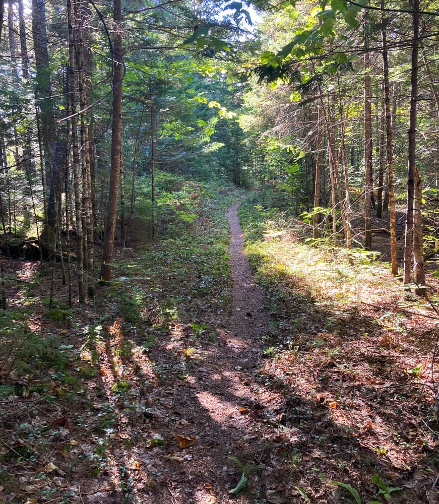 The east end of the trail terminates on the Park Tote Road near Kettle Pond. The west terminus is on the Park Tote Road near the Abol Beach Day Use Area. Cars may be parked at either end. The trail traverses level country but does cross several low, glacially formed ridges. The trail is blue-blazed.