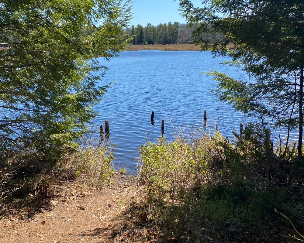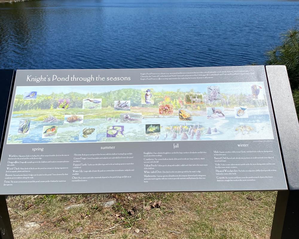 A network of color-blazed trails (white, blue, red, and yellow) as well as a snowmobile trail across the property allow visitors to explore this recently conserved preserve. A few other short/spur trails provide trail connections or scenic views. The 0.3-mile Village Connector Trail provides access to the preserve from the center of North Yarmouth. The trail from the primary parking to the pond is easy, while some of the other trails in the preserve are moderate.