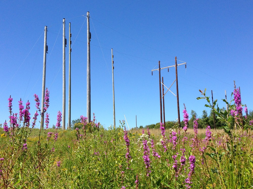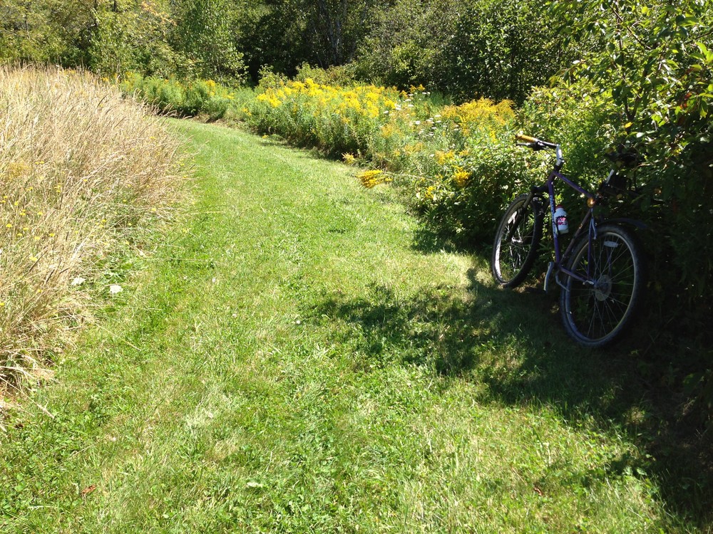 Begin your walk of the Kennebec Valley Community College Campus Trail in one of two spots: from the grassy path that leads down from the turn in the campus access road before the library or from the library itself (parking available). The path follows the edge of the field then through the woods to another field and gets noisier as you approach I-95. It then loops back past the power pole training area towards the library. There is a link to the Annex Building from the trail, as well.
