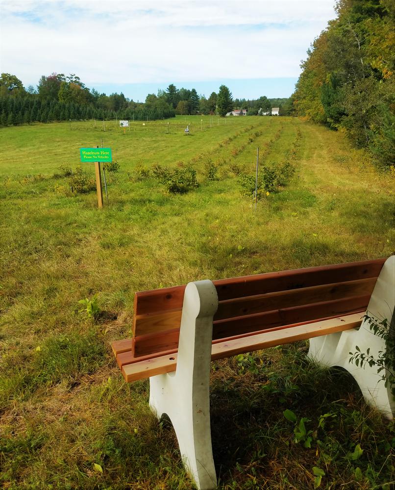 The Law Farm Loop Trail continues on from the observation deck, marked with white blazes, arrows and educational signs along the path. The trail comes to a winding end behind an organic Christmas tree stand, planted through the "Kids and Trees" program. Also near the end of the trail is the most northern American chestnut germplasm orchard in the United States, which can be viewed from the picnic area near the parking lot where the loop trail connects back to the trailhead.