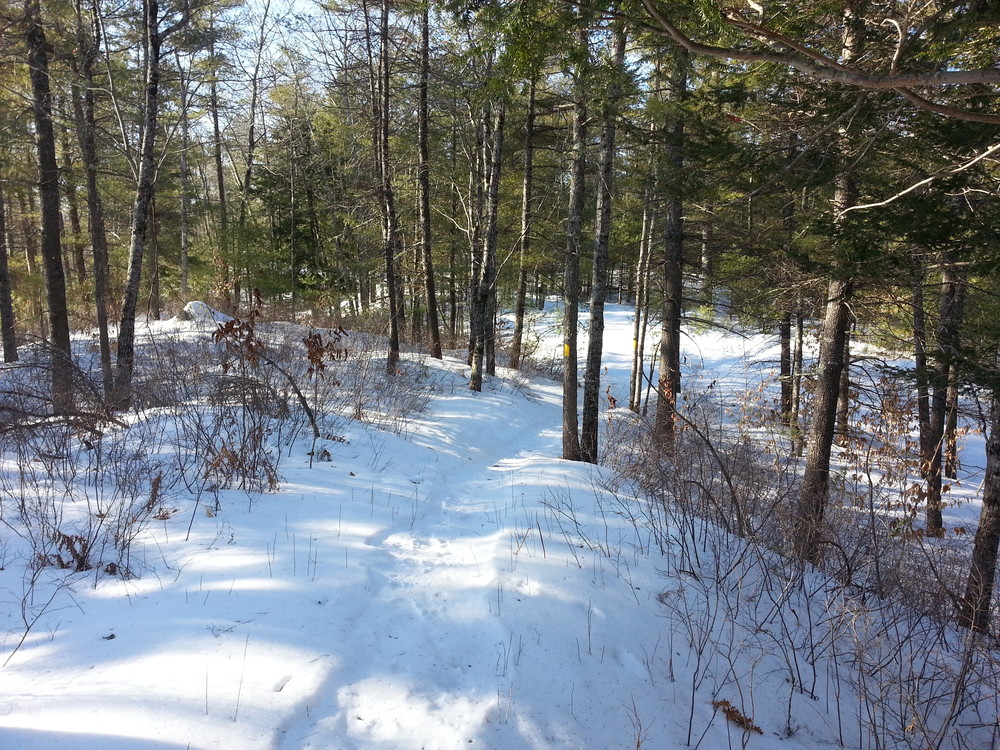 The single-track trails (Lynx, Harold Libbey, Ghost, Outback) offer the most terrain and habitat variety while traversing through forested uplands and wetlands, over glacial eskers, and across a small stream into active beaver and moose habitat. Moderately difficult with several steep areas, these are the most remote trails, and as such, provide great hiking and adventurous mountain biking. In the winter, they are designated snowshoe trails.