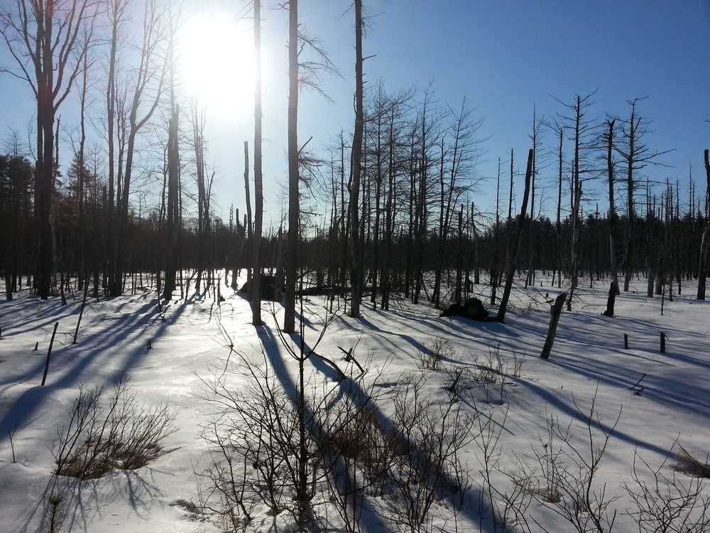 The single-track trails (Lynx, Harold Libbey, Ghost, Outback) offer the most terrain and habitat variety while traversing through forested uplands and wetlands, over glacial eskers, and across a small stream into active beaver and moose habitat. Moderately difficult with several steep areas, these are the most remote trails, and as such, provide great hiking and adventurous mountain biking. In the winter, they are designated snowshoe trails.