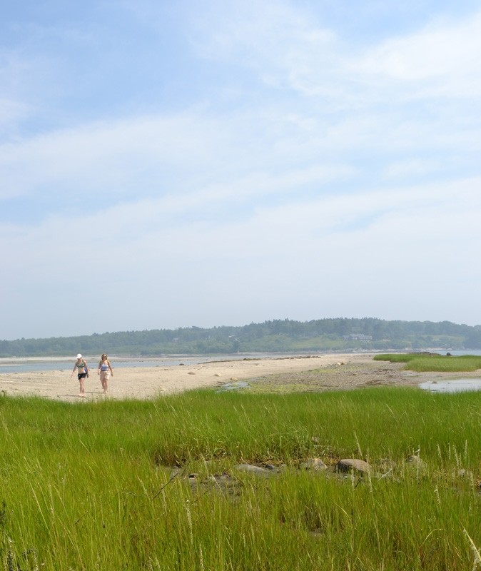 Near the southeastern end of the Cottage Loop Path, there is another trail segment leading to a north-facing cobble beach. From here, hikers can enjoy views of Great Chebeague's southern shore and Cousins Island to the north. It is possible, especially at lower tides, to walk east along this shoreline and connect with the interior trail system at Sandbar Point.