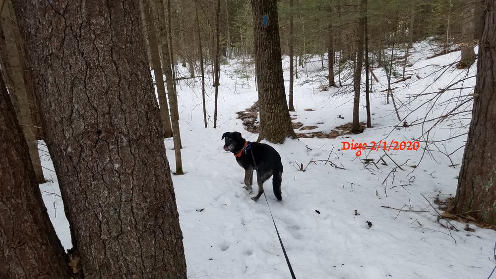 The trail is well marked with various colored markings depending on which of the color-coded loop trails you choose to take. Starting at the parking lot, the trail first enters a small thicket and then crosses a field and ends at Aspen Lane, a small suburban cul-de-sac. The trail continues from the opposite side of the road about 100 yards to the north (right).