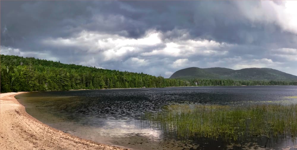 The views of Black and Catherine Mountains across the pond from the Little Tunk Pond Trail are dramatic.