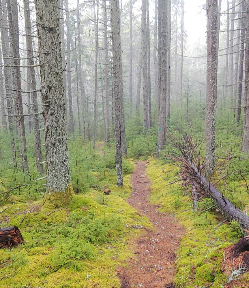 This 1.5 mile figure-eight begins by taking the trail to the left just beyond the trailhead, onto the Spruce Woods Loop (blazed blue), formerly known as the old logging trail. After 0.4 miles, the Spruce Woods Loop comes to the junction with the Muscongus Bay Loop. Muscongus Bay Loop (blazed green) is 0.5 miles in length, and goes downhill to the shore of Muscongus Bay before coming back up to meet up with the Spruce Woods Loop. The Muscongus Bay Loop contains one section that is fairly steep. Taking a left after completing the Muscongus Bay Loop, the trail continues around the Spruce Woods Loop, returning back to the parking lot in a clockwise direction.