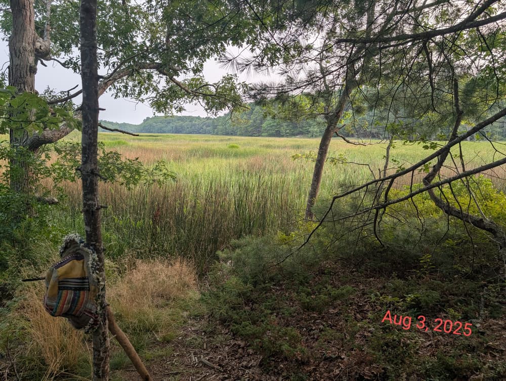 This short but very beautiful walk along the uppermost reaches of Cutting Creek leads through a older pine forest to the north end of the salt marsh. Nearby, a small feeder stream leads to the marsh, providing a wonderful “babbling brook” background to the walk. Autumn is an especially lovely time to visit Mary’s Woods; the color changes in a salt marsh are more subtle than in tree leaves, but certainly as beautiful.