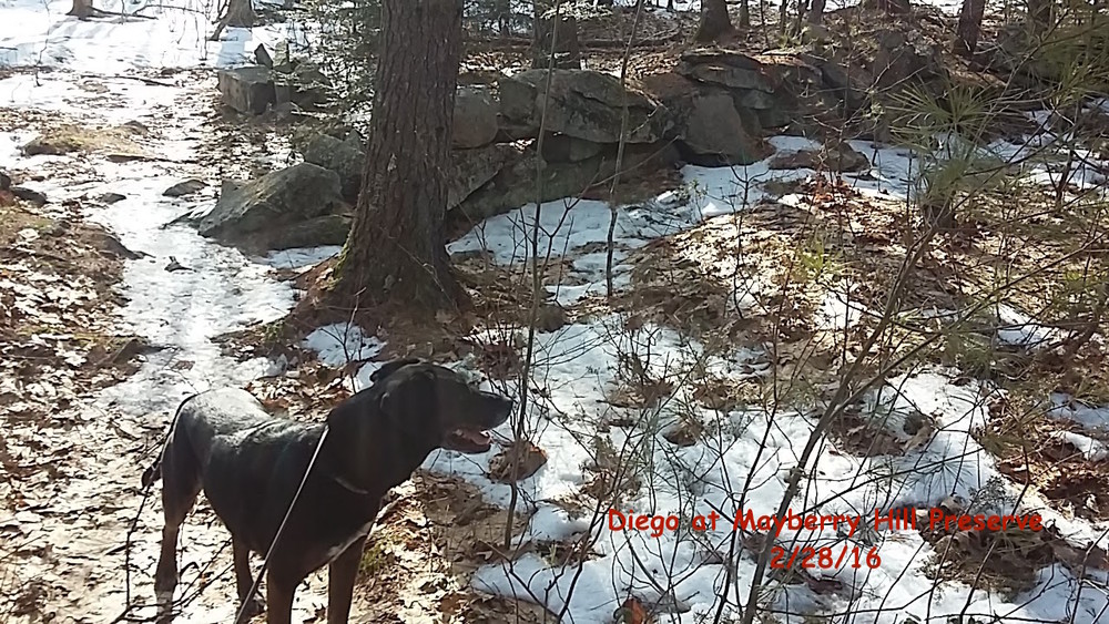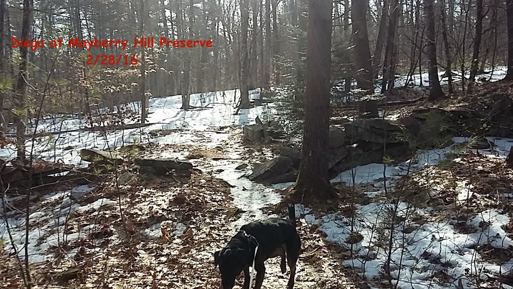 Allowed uses include day hiking, dog walking, snowshoeing, and cross-country skiing. Hunting is allowed in season, so please wear blaze orange October through December.