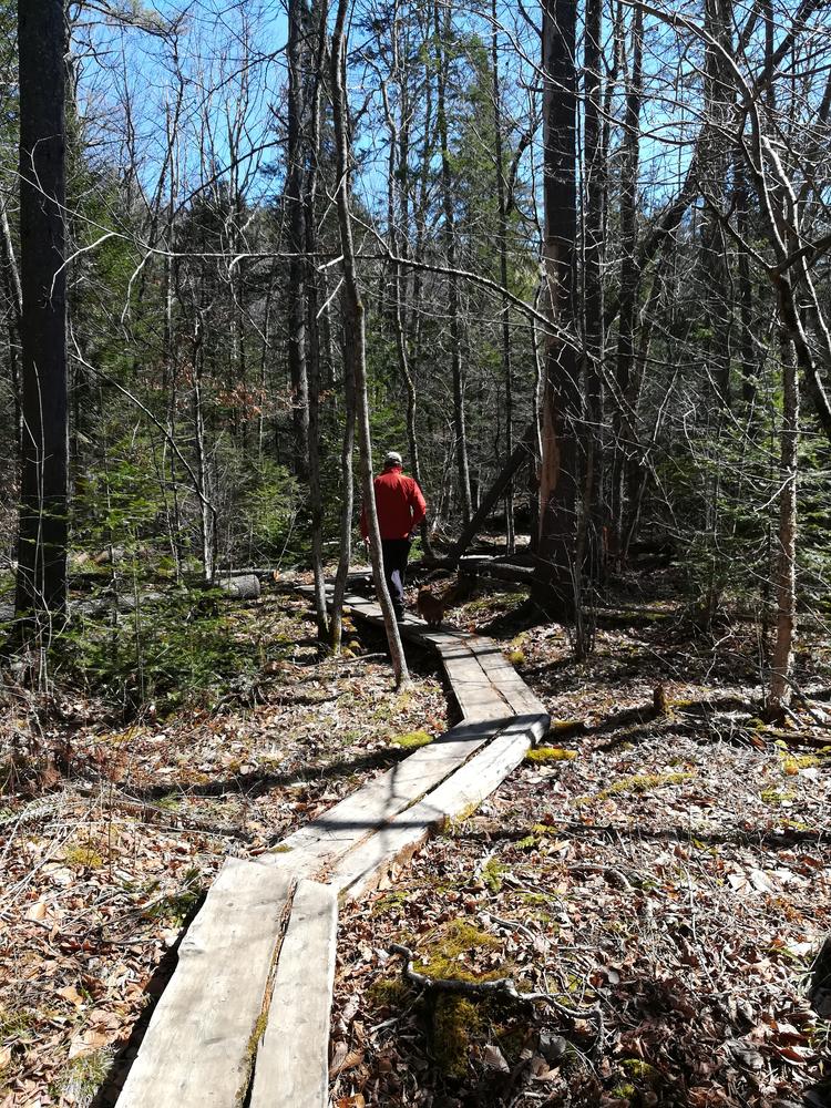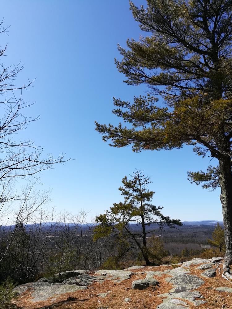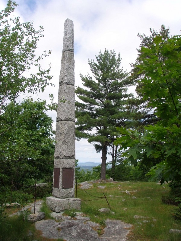 Two almost parallel trails split just after the trailhead to provide a mile long loop to the top of Monument Hill, where there are excellent views of Androscoggin Lake and the surrounding area. The trails are of a moderately steep grade. The hill is so named for a Civil War peace monument erected in the late 1800s by local resident Major General Oliver Otis Howard who was himself in the Civil War. Letters transcribed at the kiosk highlight some of the history of the moment and the Howard brothers. In more recent times there was also a fire tower on the hill, but now that has been removed.
