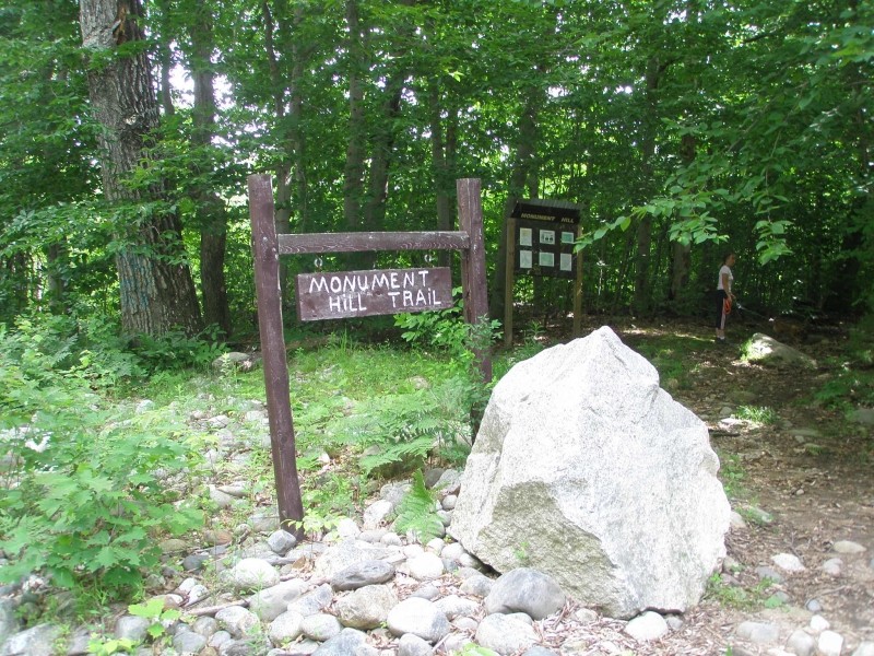 Town of LeedsMonument Hill is most easily reached off of ME Route 106 or ME Route 219 in Leeds. From ME Route 219, take North Road (approximately a half mile west of the ME Route 219/ME Route 106 intersection). Follow North Road for 2.4 miles and look for the trailhead sign and pullout on the left.