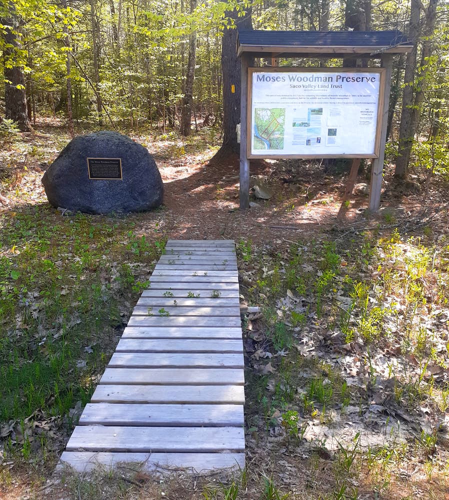 Saco Valley Land TrustFrom Saco Center, follow North Street as it turns into ME-112/ (Buxton Road). After about 3.5 miles, turn left onto Simpson Road. Continue for 2.5 miles to a kiosk on the lefthand side of the road. After another 15 yards, the parking area and gate will be on the left. The small lot can accomodate two cars. Winter parking may be tricky, as the plows often create snowbanks in the lots and shoulder of the road. Use caution while parking.