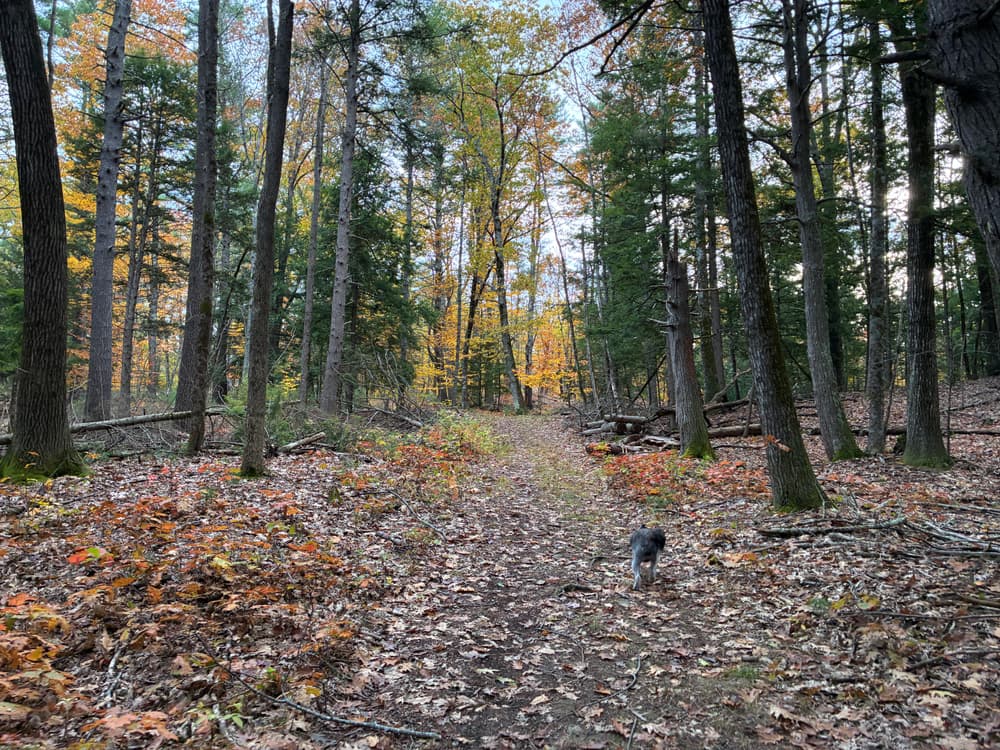 Great trail for dogs. Water was super low so we were able to get on the river bank and our lab got to swim!