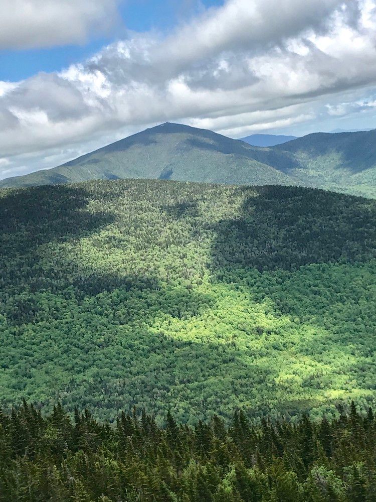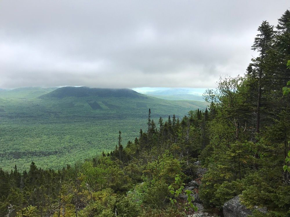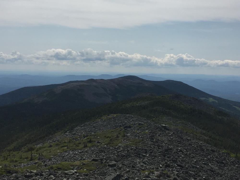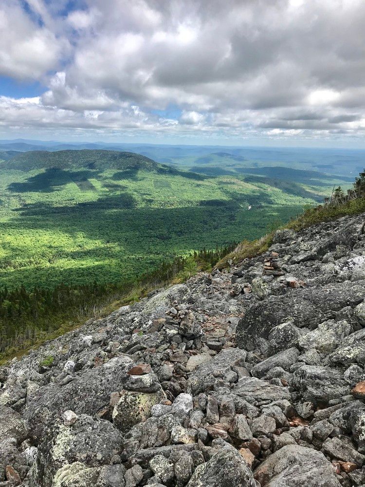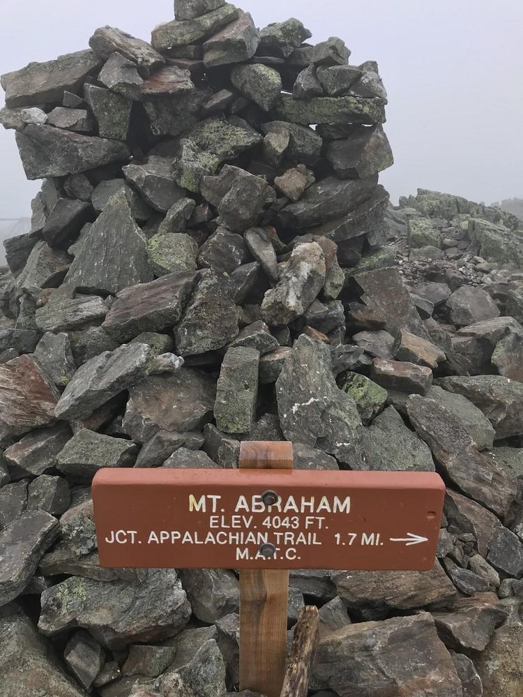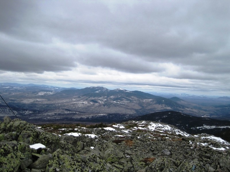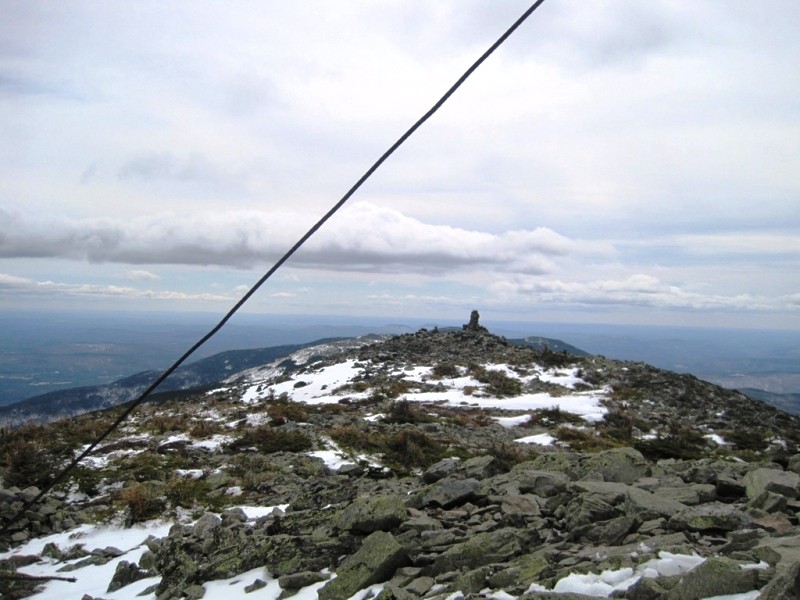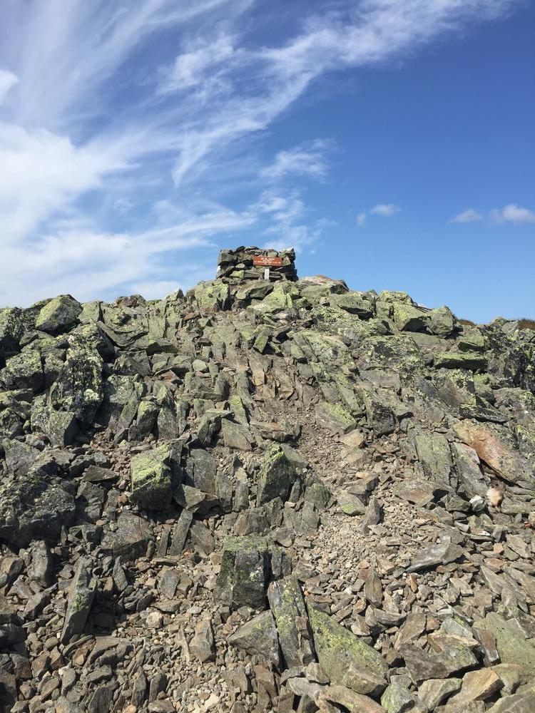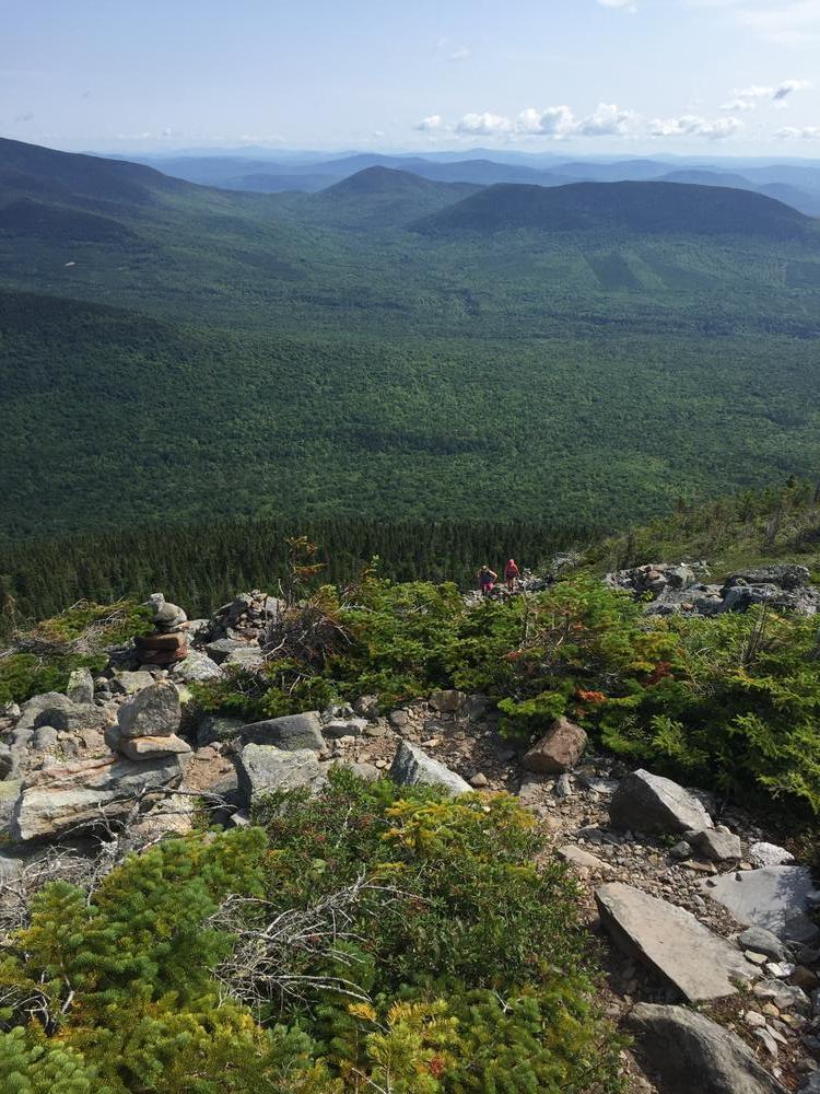 At the summit, there is a large cairn marking the peak. Here, the trail connects to a side trail which runs north to connect to the Appalachian Trail. On a clear day hikers can enjoy 360 degree views of the entire High Peaks region of Maine.