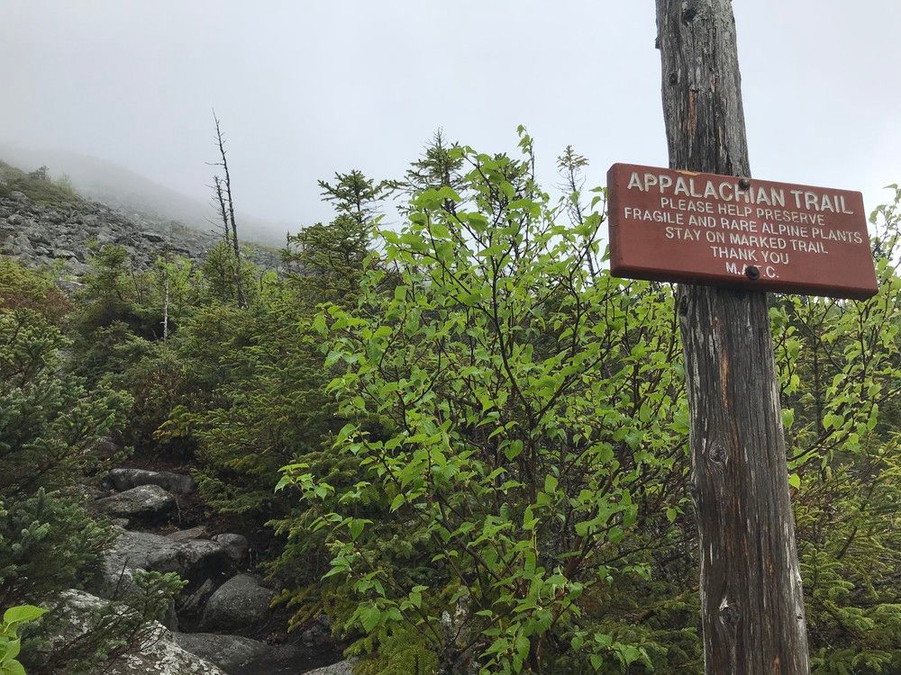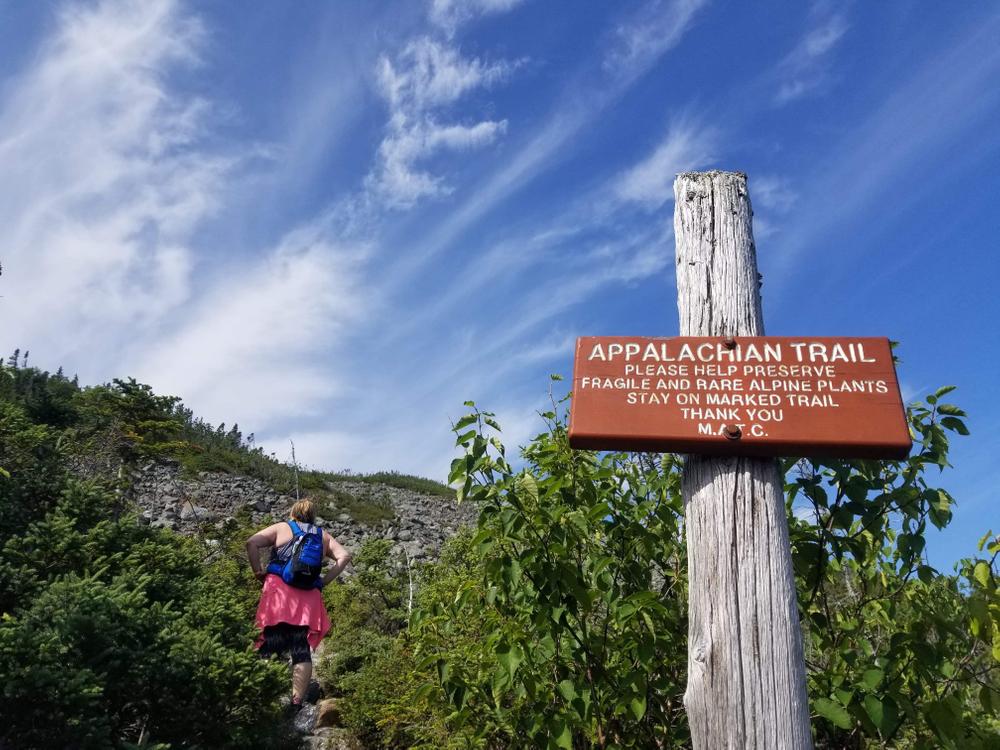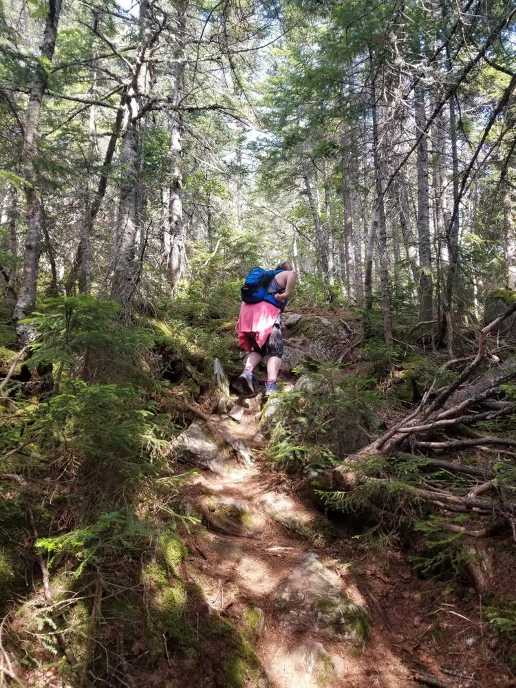 From the trailhead, the trail goes through forest stands of deciduous with open undergrowth, crosses another logging road at just over a mile, and continues to a campsite reached at roughly 2.5 miles from the start of the trail, the trail begins to steadily and sometimes steeply climb towards the 4,045 foot summit of Mount Abram. About three-quarters of a mile from the campsite, the trail breaks above tree line offering great views on a clear day of nearby Spaulding and Sugarloaf Mountains. The remaining half mile of the trail to the summit is a boulder scramble through the second largest alpine zone in Maine. At approximately 350 acres, it is second in area only to Katahdin in the state. This section of trail is very exposed and can be dangerous in bad weather. The trail is well marked by cairns above tree line, but even the experienced and advanced hikers will need to pay attention to stay on the trail, especially in bad weather.
