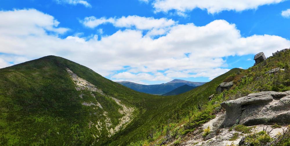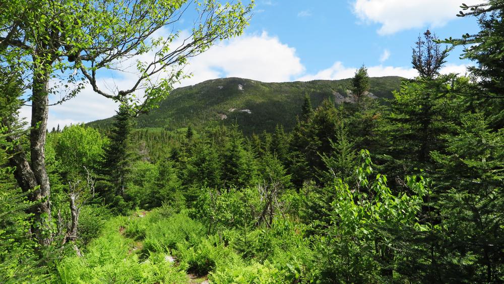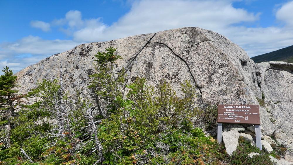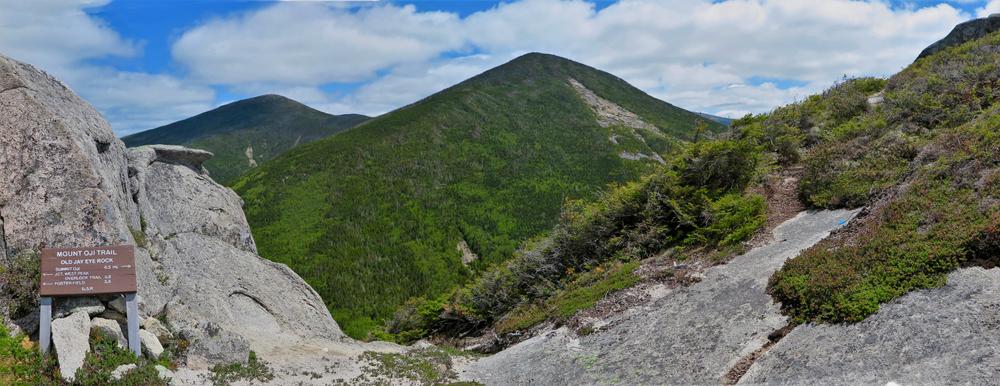 4.2 Miles: The trail reaches O-J-I Link Trail that descends 0.5 miles north to the valley between O-J-I and Mount Coe. After reaching the Mount Coe Trail at the base of the Coe Slide, this trail can be used as a descent loop via the Mount Coe and Marston Trails, 3.1 miles to the Park Tote Road at the Marston Trail parking lot.