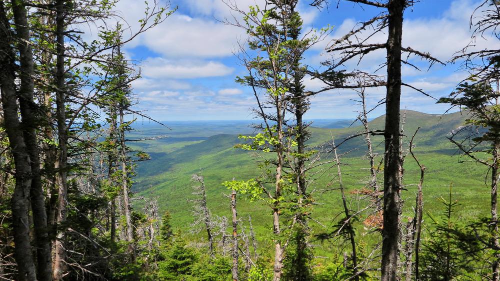 2.7 Miles: The saddle between West Peak and OJI Ridge. To the left (southwest), a short 0.2 mile spur trail leads to West Peak, an excellent viewpoint of the southern Nesowadnehunk Valley. To the right (northeast), the trail continues a graded ascent toward the northwestern ridge of O-J-I.
