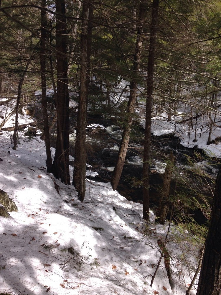 At the far end of the cemetery and within sight of water, the trail leaves pavement and continues as a footpath through woods. Immediately, there is an option to continue straight ahead and climb ledges or turn right and circle around behind ledges. The trail becomes quite rugged. It is marked by green dots and yellow logos and follows the Mousam River for about a half-mile to Indian’s Last Leap, a scenic spot and swimming hole, where legend has it that a Native American chasing a settler fell to his death. Leaving Indian’s Last Leap, the trail soon comes to an open area and power transfer station on Stanley Road. The trail heads left, crossing a footbridge and returns to the river’s edge. The trail continues to the Springvale Recreation Area. Continue across fields to stairs and a parking area, then along the sidewalk on Main Street back to Springvale Village and the trail’s beginning.
