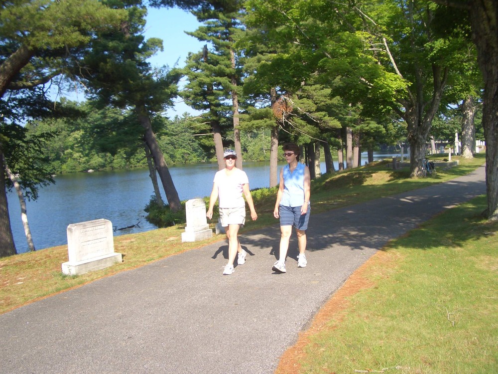 Going north: From Mousam Way Park, follow the brick crosswalk onto Water Street. Continue to the end of Water Street where it intersects with Mill Street. Cross Mill Street and follow the Haven Cove Condominium driveway to reach the gravel trail. Follow to the top of the dam on left and along the shore of Mill Pond toward the condominiums. The trail crosses pavement between buildings to a fence at the perimeter of the property. Follow the gravel ramp along the fence to reach an opening through to Riverbank Court. Trail proceeds down Riverbank Court and enters Riverside Cemetery. Follow painted logo on pavement around to left. Fine views of Mill Pond.