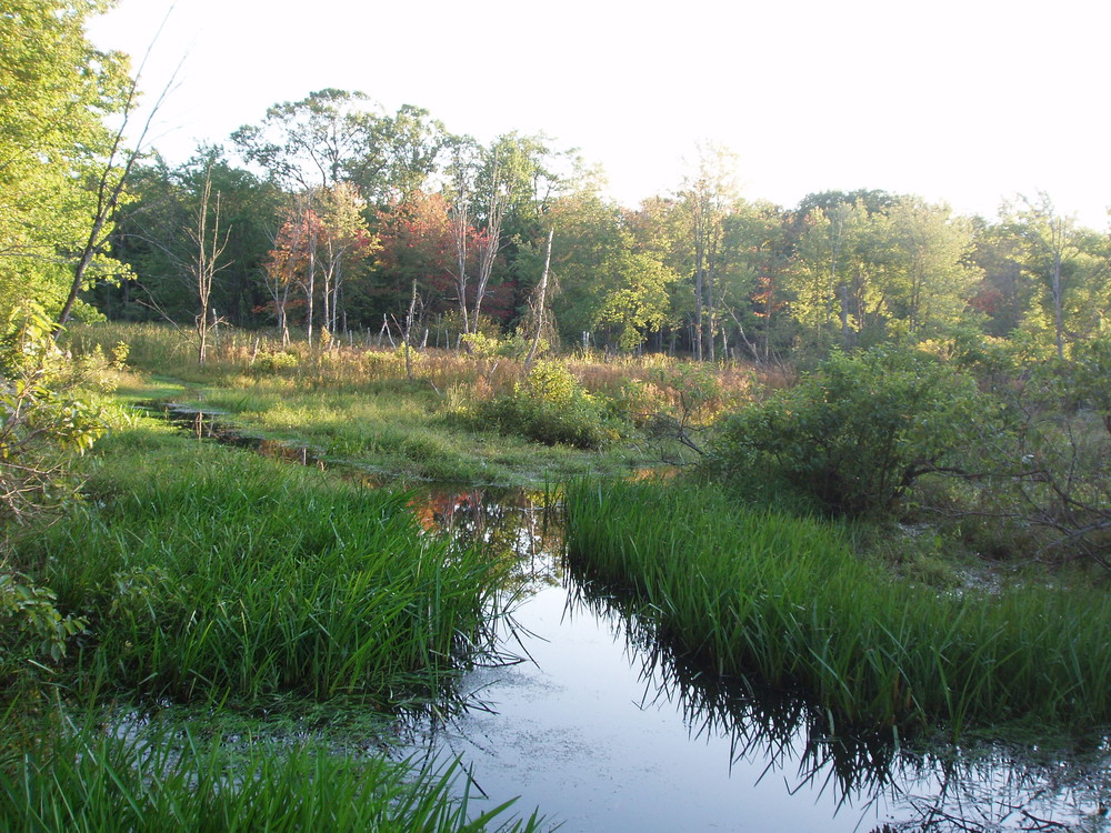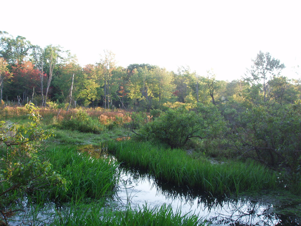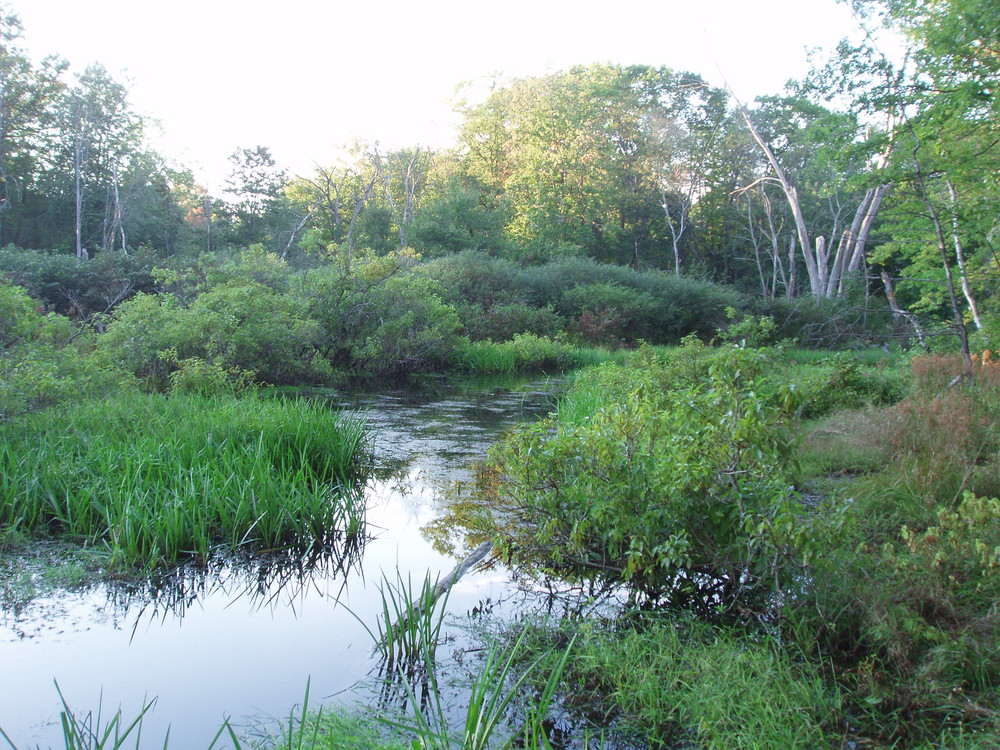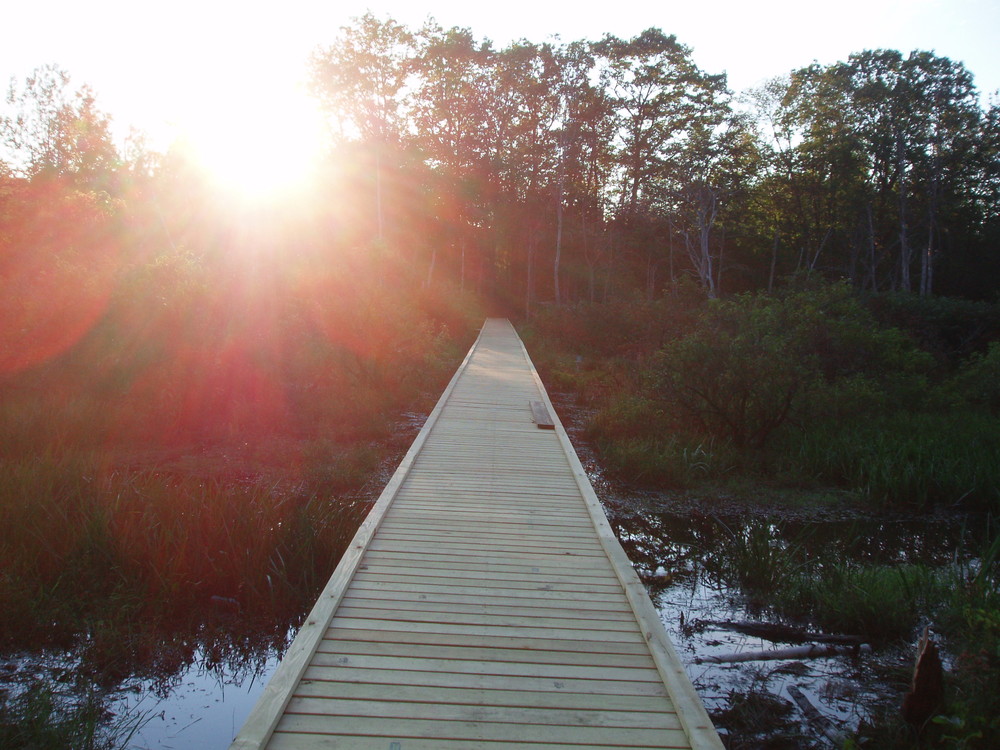 Starting from Emery Street, pass around a gate and continue along the river to a clearing with a big rock. The trail turns left and descends to a 300-foot boardwalk that crosses a marshy backwater of the Mousam River. On the opposite shore, the trail enters the woods and diverges. The right fork circles around the marshy area, leaves the woods, descends a sloping open area to a wooden footbridge, and returns to the rear of the parking lot where the trail started. The left fork swings left and follows the river downstream and eventually joins the sewer trunk line. The trail skirts the perimeter fence of the Sanford Public Works Facilities and ends at a small parking area on School Street. Please stay on trail and pick up litter as this trail traverses private property.