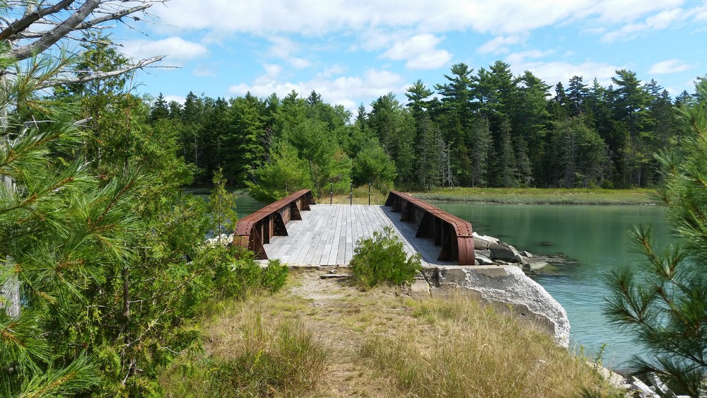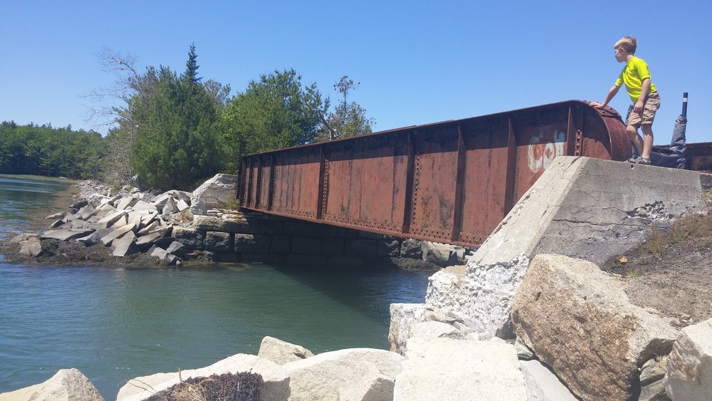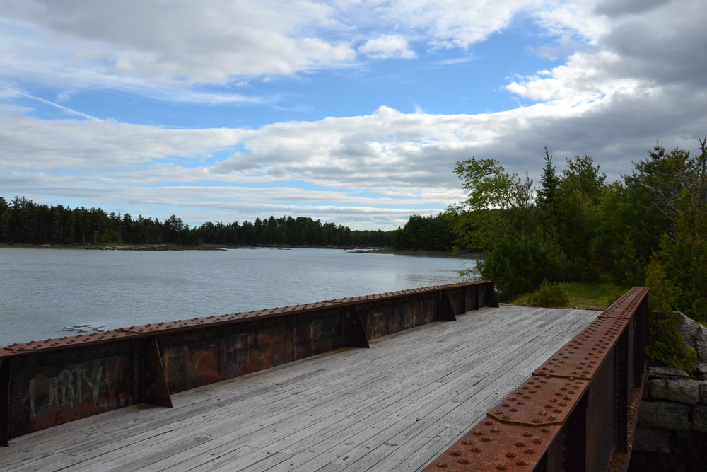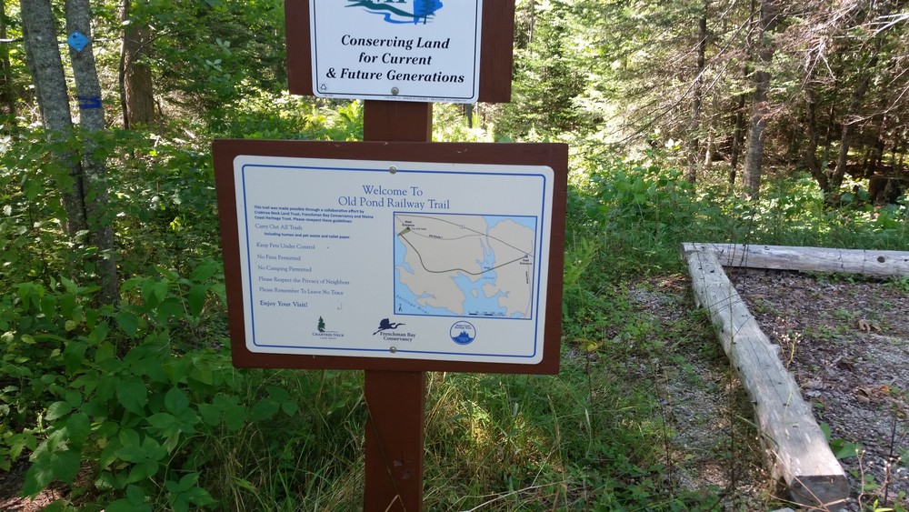 In the fall of 2009, some local Eagle Scouts worked to create a parking area off of the Point Road, to clear the first half mile of trail leading from this parking area, and to repair the trestle bridge making it safe and usable. Later, a second parking lot was constructed at the western entrance to the trail, on Old Route 1, via Kilkenny Cove, a property acquired by Crabtree Neck Land Trust, Maine Coast Heritage Trust, and Frenchman Bay Conservancy.