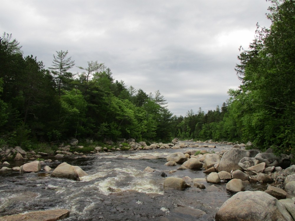 Orin Falls is a long series of cascades over boulders. Wassataquoik Stream drains a large section of Baxter State Park, and is the route Henry David Thoreau used to hike up Mt. Katahdin from the East Branch Penobscot River in the 1840s. At that time, there were few trails and no roads within the entire area.