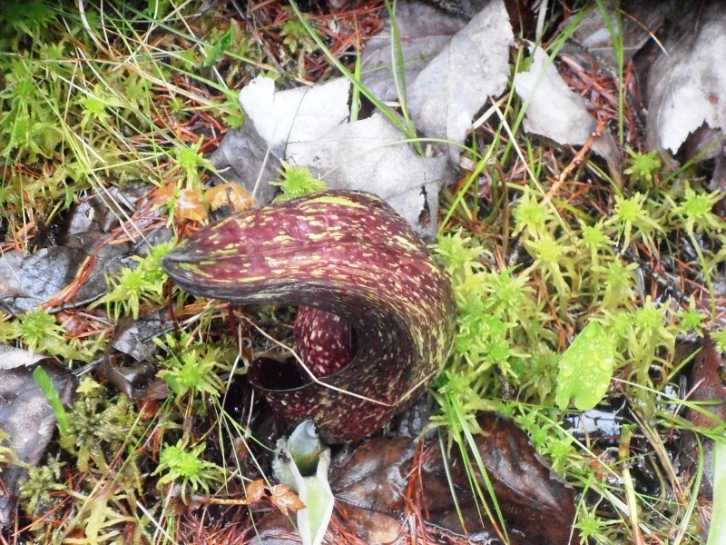 At section 100 (800 feet in) the Boardwalk splits and forms a loop, consisting of 409 sections (or 3200 feet). The first 186 sections (1500 feet) of the Boardwalk are dominated by woody vegetation and include a variety of fern species, black spruce, larch, sedges, skunk cabbage, leatherleaf, Labrador tea, bog bean, and other plants. The Boardwalk then travels through an open bog. Most of the trees and shrubs are less than 6 feet tall with a few conifers reaching heights of 20 feet. In some areas, the Boardwalk traverses peat that is over 25 feet deep. The vegetation in this area is dominated by a variety of peat species. Depending on the time of a visit the following plants may be observed blooming or fruiting: pitcher plant, bog rosemary, rhodora, sheep laurel, tawny cotton grass, two species of sundew, bog cranberry, and four species of orchid, including grass pink and white-fringed.