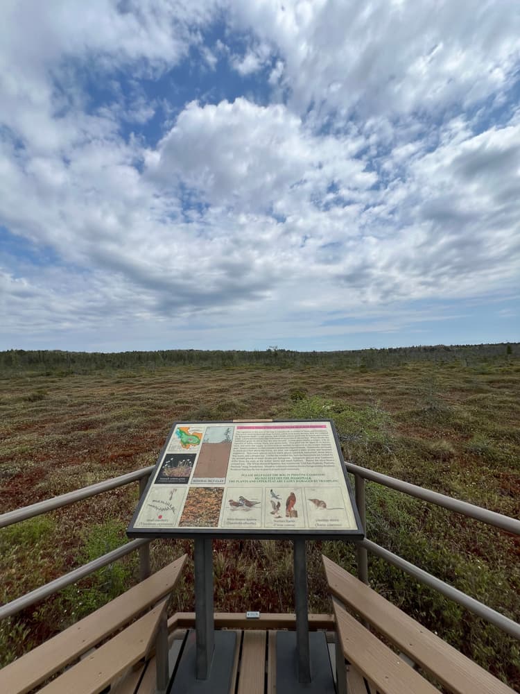 An informational kiosk at the beginning of the Boardwalk explains the history of the Orono bog.