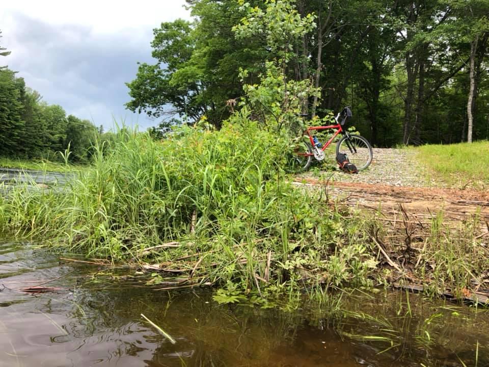 The Riverside Trail follows the banks of the Penobscot River for its entire length of 6.7 miles, offering spectacular view, and occasional crossings over well-constructed bridges. There are Link Trails to the east every mile or two, linking to the Tote Road which parallels the Riverside Trail and heads back to the Silver Maple Trail, allowing bikers to loop back to the trailhead at any time for routes of a variety of distances. The Riverside Trail leads to two huts with vault toilets. The Pine and Ridges hut is located 3.5 miles from the trailhead; the Long Meadow hut, which offers views of Katahdin, is 8.5 miles from the trailhead.