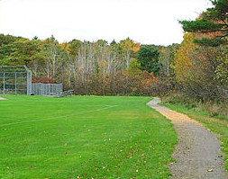 A flat, walking path follows the perimeter of the athletic fields and provides connection to the Eastern Trail near the Scarborough Marshes.