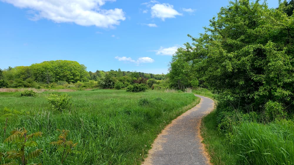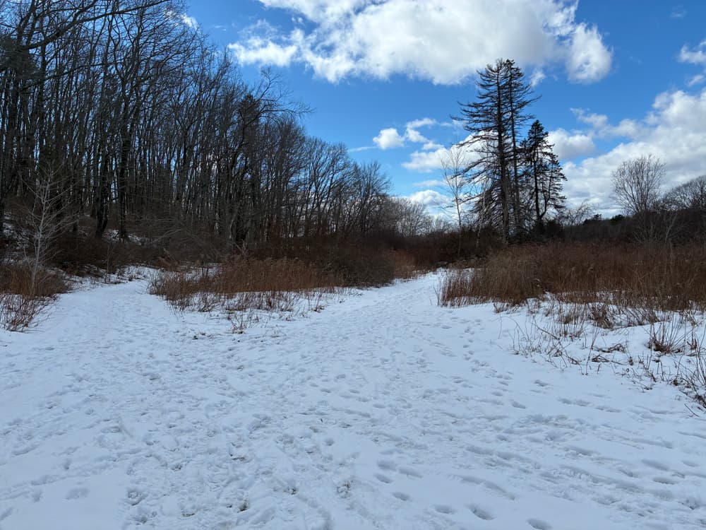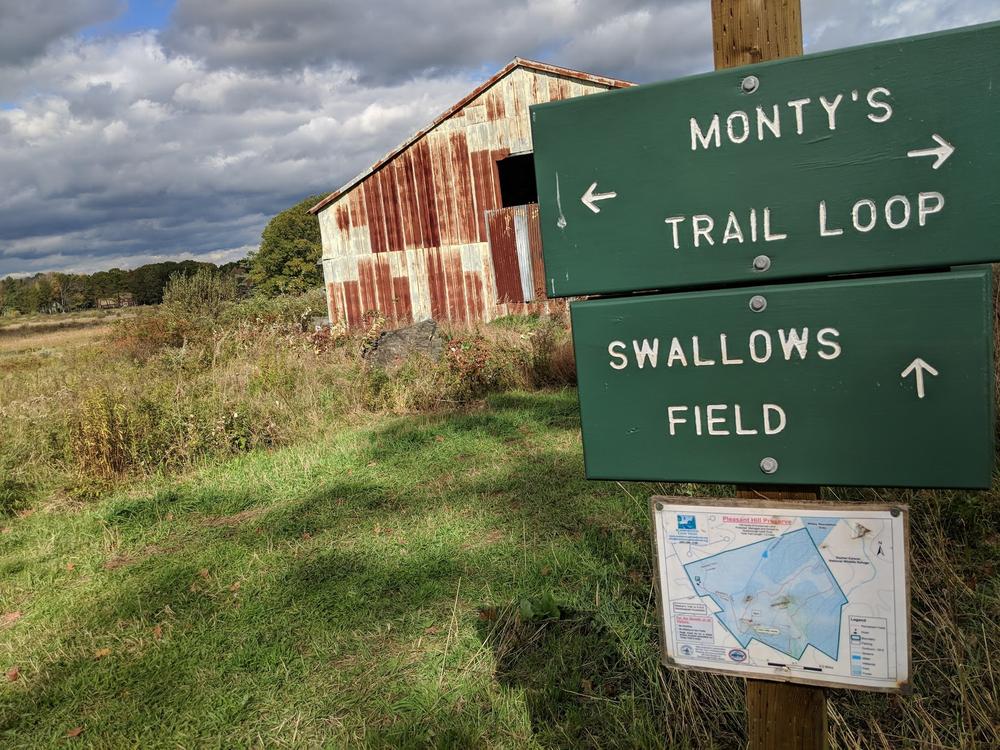 Swallow's Field is a 0.2-mile trail that cuts off the south end of Monty's Trail, through old farm fields.