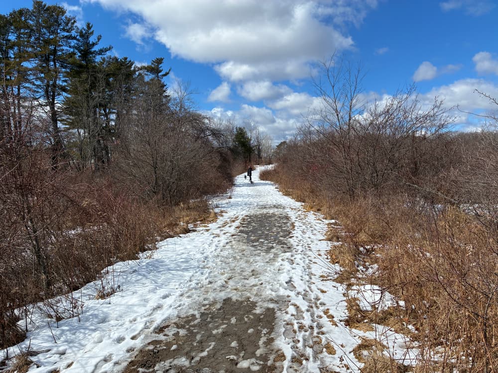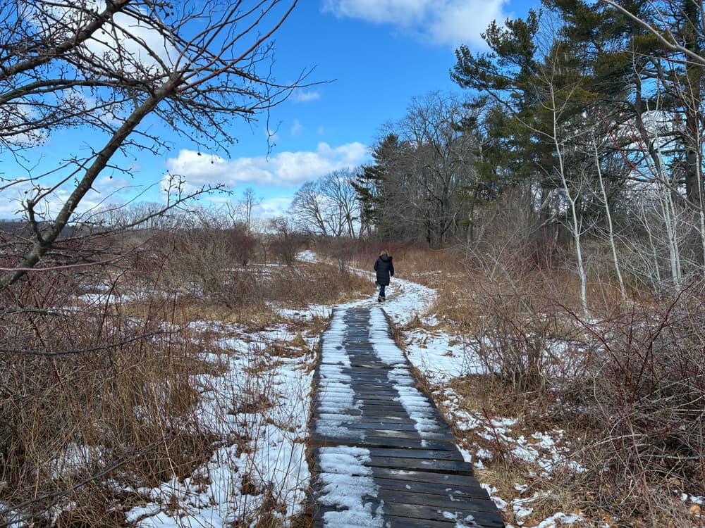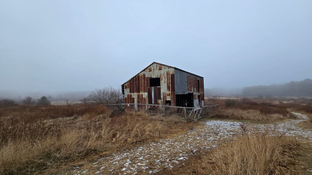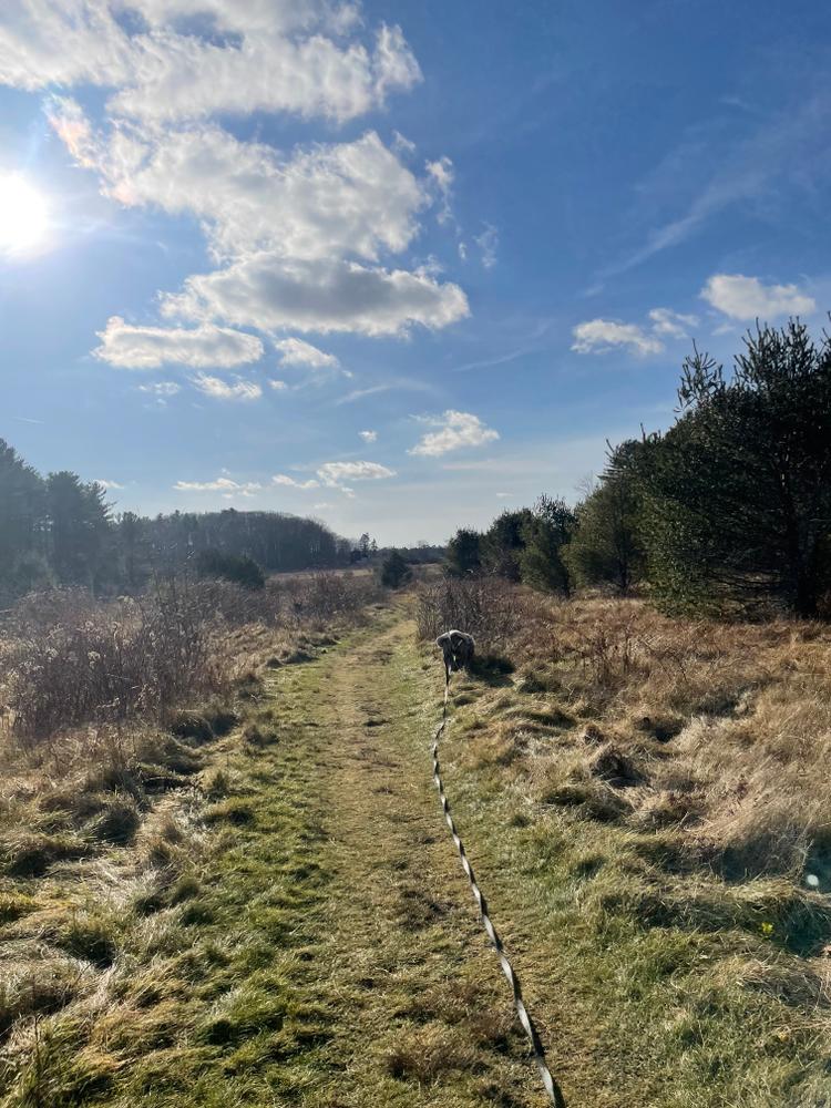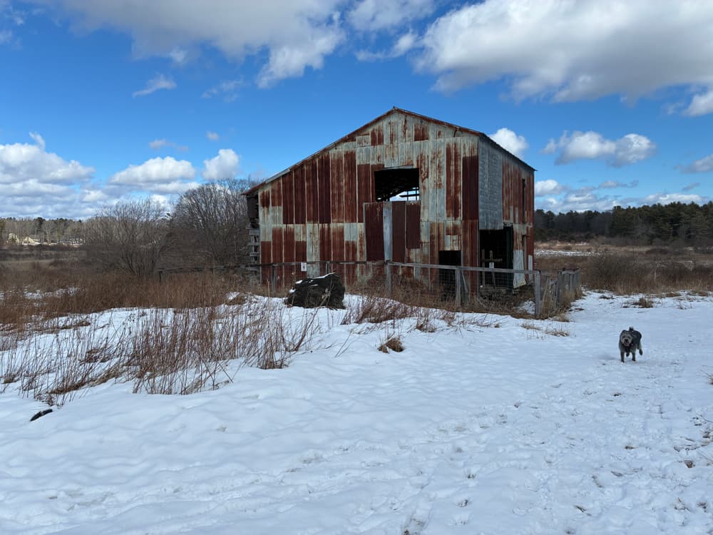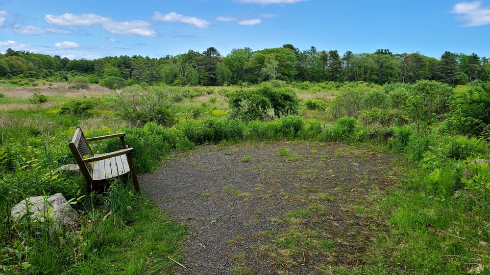 Eleanor’s Trail is a Universal Access/ADA Trail, designed to accommodate wheelchairs, walkers, and strollers! The 0.25 mile path is made of crushed stone with a few gentle grade changes. A wetland overlook allows people to step off the trail and admire the headwaters of the Spurwink River. There is a bench at the trail terminus that allows people to rest while enjoying a view of old farm fields and the remaining metal barn. Prepare for 0.5 miles round trip.