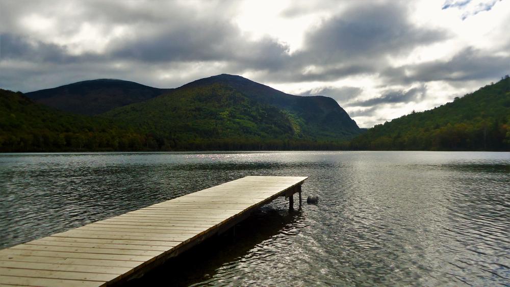 1.4 Miles: At the base of a talus slope of Center Ridge, the trail ascends over cliffs that drop directly into Upper South Branch Pond.
