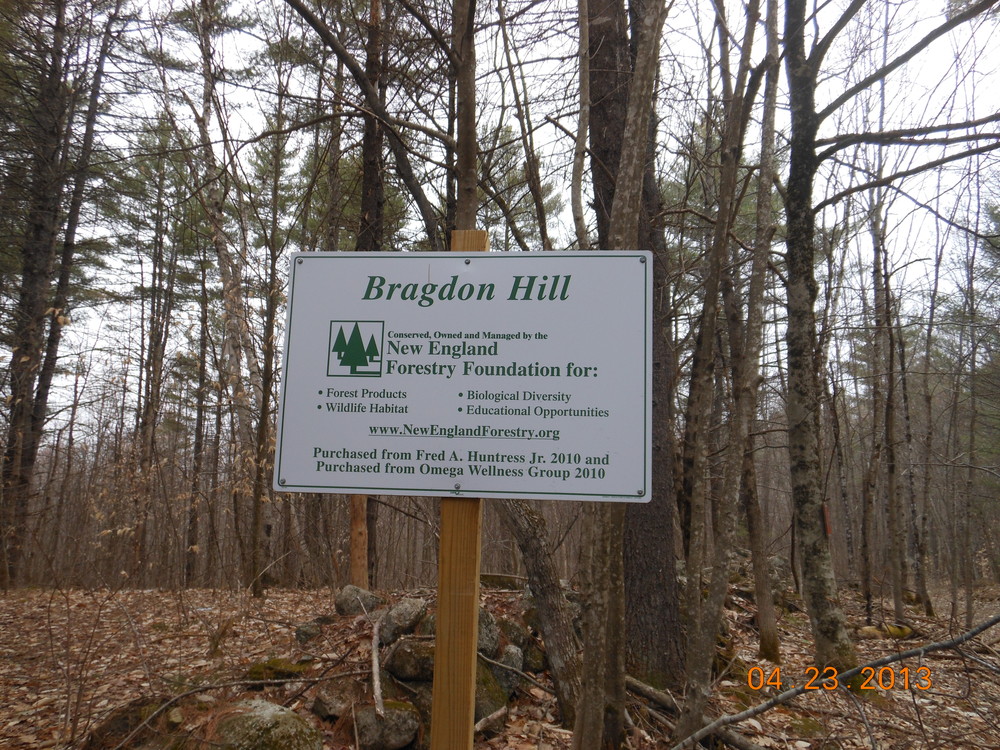 Daniel Schellinger owned much of the Bragdon Hill property in the 1800s and ran a small hill farm. The New England Forestry foundation purchased this property from the Omega Wellness Group and Fred A. Huntress, Jr. in 2010. Mr. Huntress managed several forests for NEFF through his career with an emphasis on growing high quality saw logs. A discontinued town road runs through the middle of the 222 acre property, and is part of the easternmost trail loop.