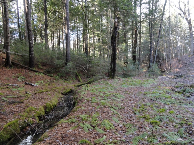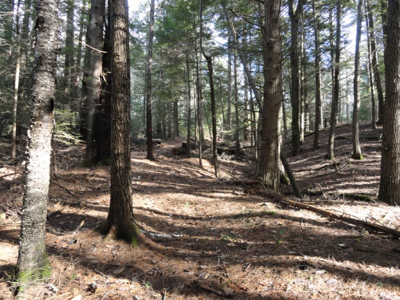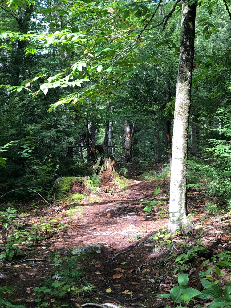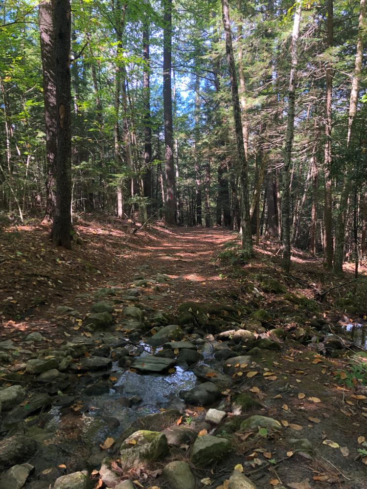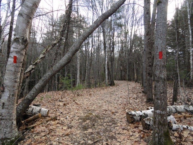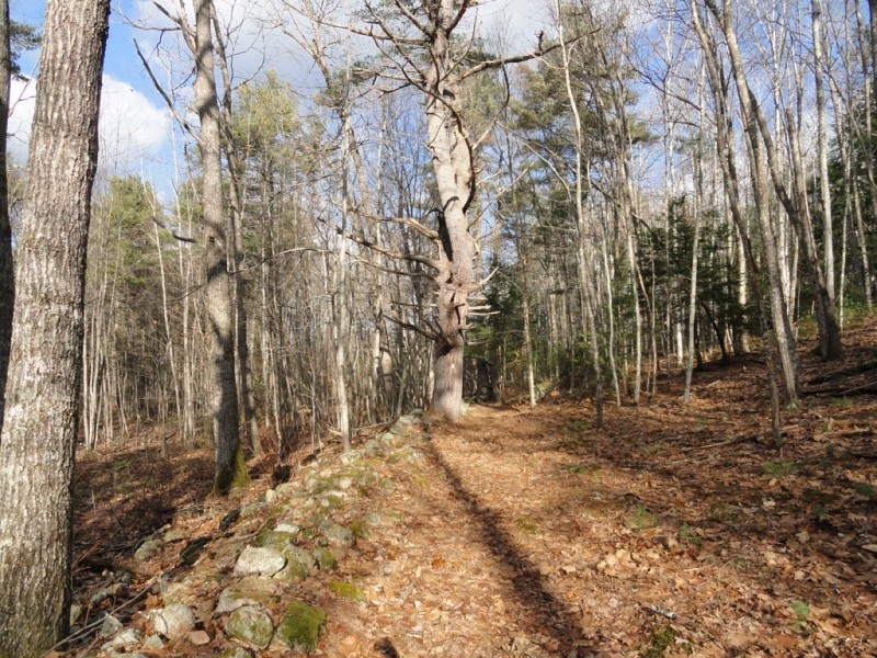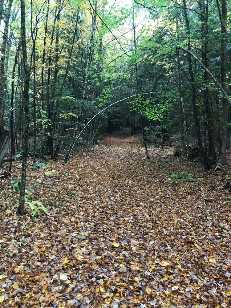 A perimeter loop trail extends from the parking lot and follows the original Cross Road continuing on to an original rangeway. The trail then intersects with the Common Road, a discontinued town road before looping back to the west across a town-owned woodlot.