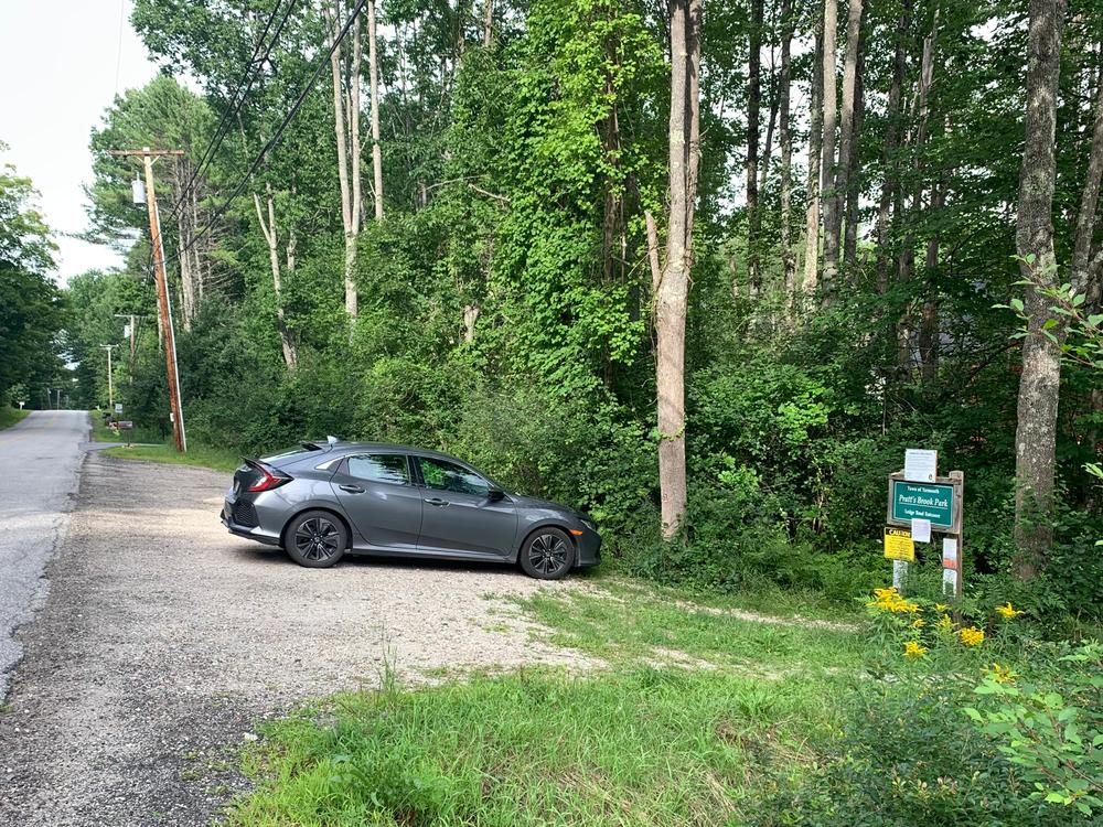 Ledge Road, about 1.2 miles from North Road or 0.4 mile from Granite Street, the entrance is about 150 feet east of Mountfort Road on the south side of the road, with parking on a wide soft shoulder for up to four cars.