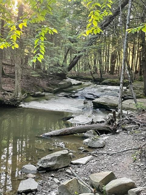 Pratt's Brook trails loop through piney woods and open meadows, with bridges and other crossings over the many tributaries of Pratt’s Brook, offer great hiking, snowshoeing and exploring. Good bird watching sites include the open fields with bluebird boxes (North Road fields), stream-side overlooks, blueberry fields, and a beautiful rocky waterfall on the Otter Trail. With adequate snow there are groomed ski trails ranging from easy to moderately challenging with opportunities for wildlife observations, including a small active beaver pond, plentiful deer sign and barred and great horned owl calling at night. There is now a Disc Golf course located on the northwest side of the North Road parking lot.