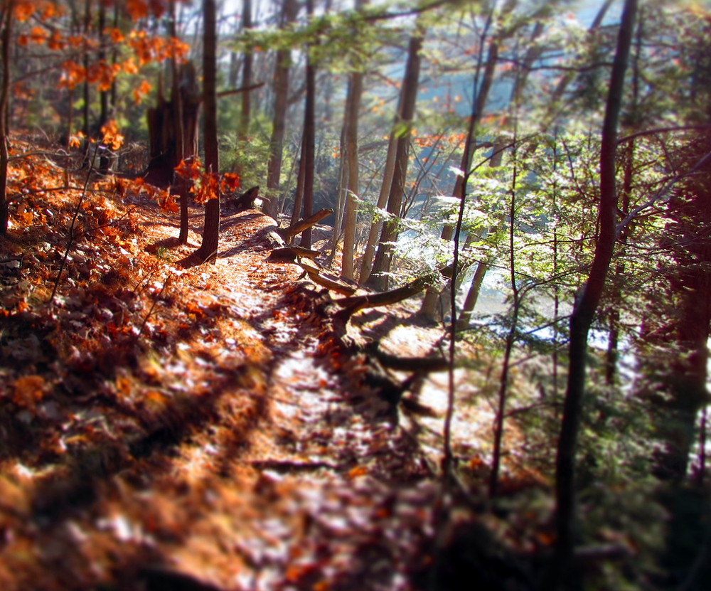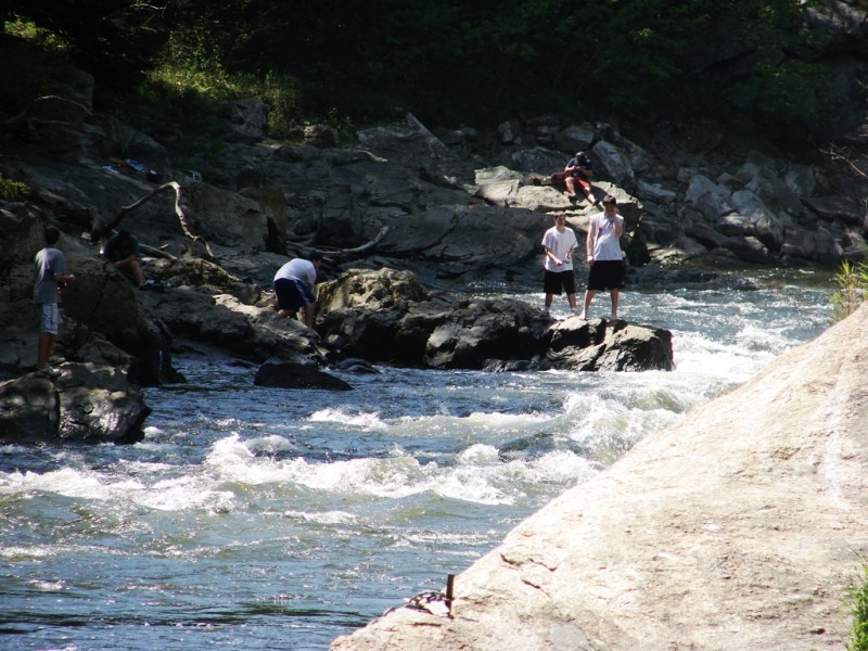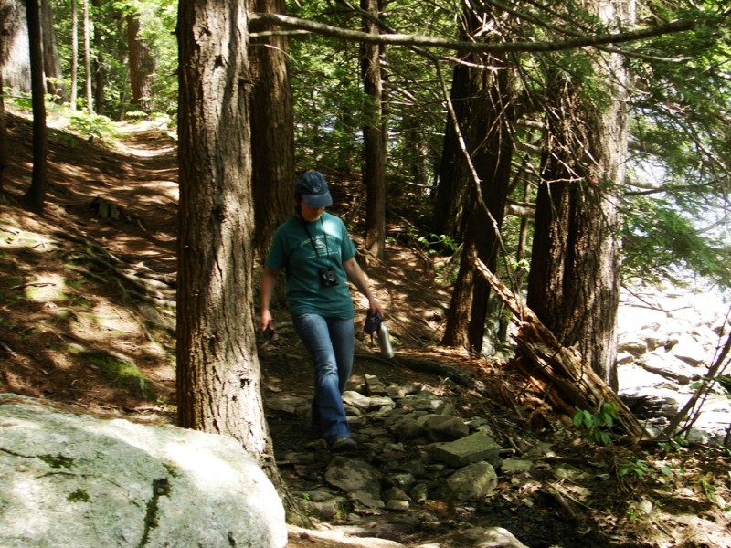 Presumpscot Falls Trail: The Presumpscot Falls Trail follows the north side of the Presumpscot River reaching points both high above and very near the shoreline, making it a short but surprisingly challenging trail. This packed earth trail winds through the woods encountering many tree roots. The trail ends at a viewpoint of Presumpscot Falls, near the location of the former Smelt Hill dam. This is a very popular fishing area, especially for striped bass. Private property beyond this point is marked and should be respected.