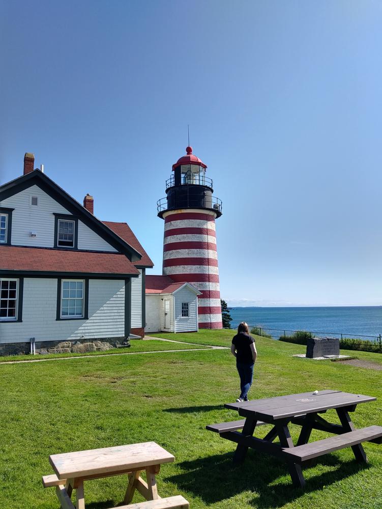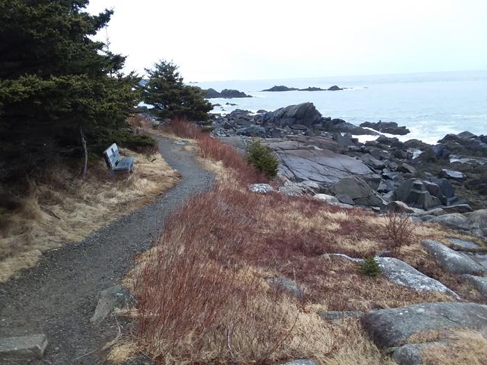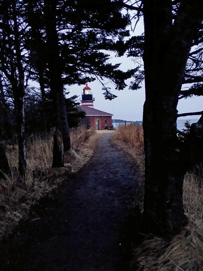 Coast Guard Trail (0.9 miles, easy-moderate, western half is accessible, eastern half is not): The Coast Guard Trail allows relatively easy access to a high cliff overlook typical of the “Bold Coast” with views north across the Lubec Channel to the town of Lubec. This trail was originally used by the lightkeepers when returning from a trip inland to the lighthouse.