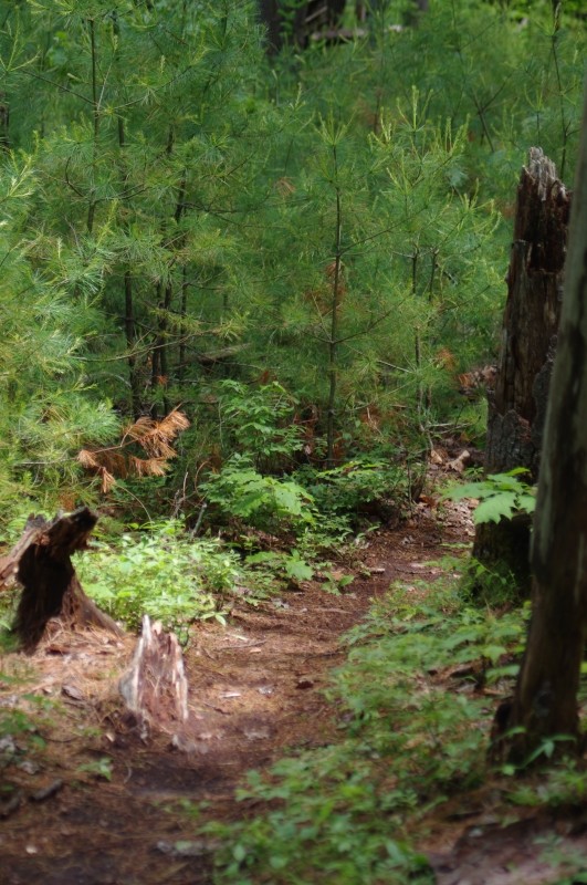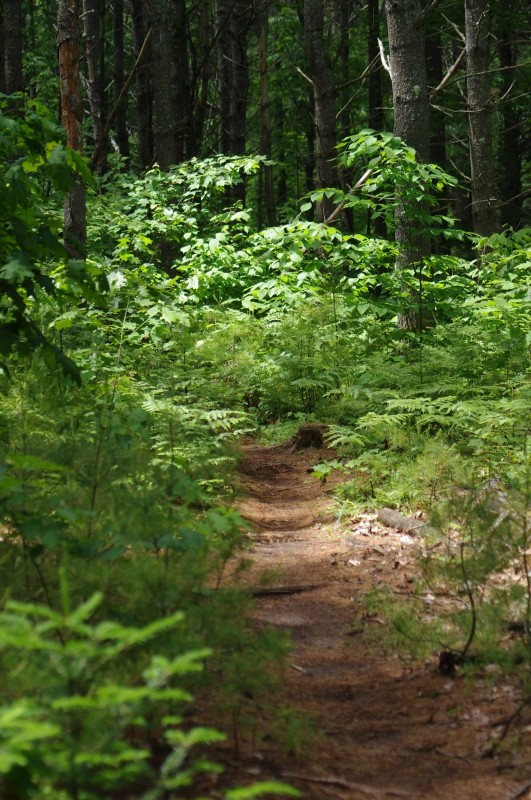 Several loop trails offer fun rolling single track suitable for intermediate level mountain bikers. All the loops are accessed off the central double track trail and wind through mature pine and hardwood forests. The trails were built with the help of local volunteers. Trails may be used for skiing, snowshoeing, and fat biking in the winter months.