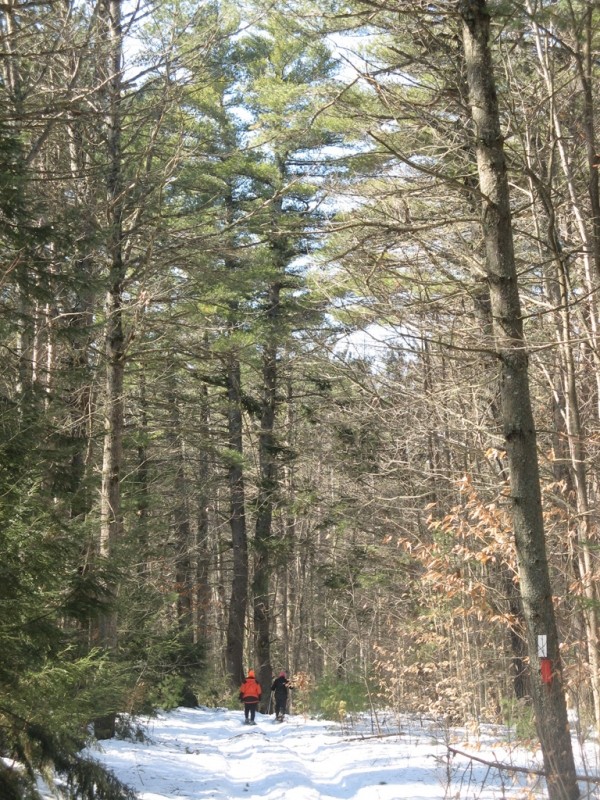 The Rines Forest contains a diversity of plant and animal life. Large hemlock and pine trees, as well as red oak, birch, poplar and maple trees abound. It is the perfect canopy for the forest’s diverse wildlife, which includes white tail deer, coyote, fox, wild turkey, ruffed grouse, snowshoe hare, fisher, porcupine, hawks, owls, and numerous other wild birds. Signs of black bear and moose have also been seen.