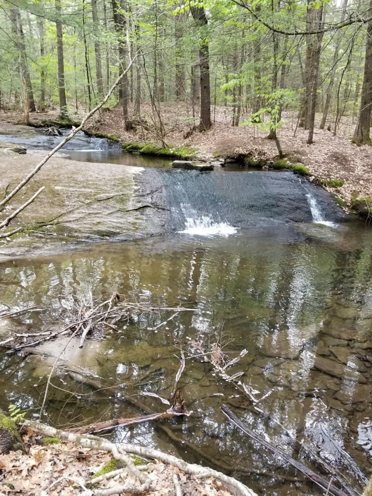 The property has large sections of relatively flat sandy soils and terrain where the red pines were planted and a smaller area to the south that is characterized by steep rolling hills interspersed with beautiful cascading streams. The largest stream is Mill Stream which eventually flows into the Presumpscot River and then to Casco Bay.