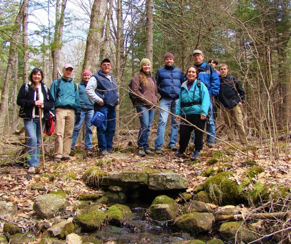 River~Link at this point has entered the Rocky Ridge Preserve, and stays on this high ground while heading south, eventually crossing onto a public access easement held by the Midcoast Conservancy. Please respect this private land by staying on the trail. The trail passes through old hemlock forest, by beaver flowages. Several more bridges, including an old stone bridge, make traversing the small streams easier.