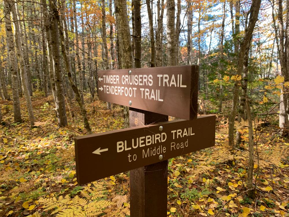Foresters Trail: This 1.7-mile trail meanders from the Timber Cruisers Trail back to the primary trailhead. Take note of changes in forest cover and species here as the trail goes back and forth between a conservation easement and actively managed timber land.