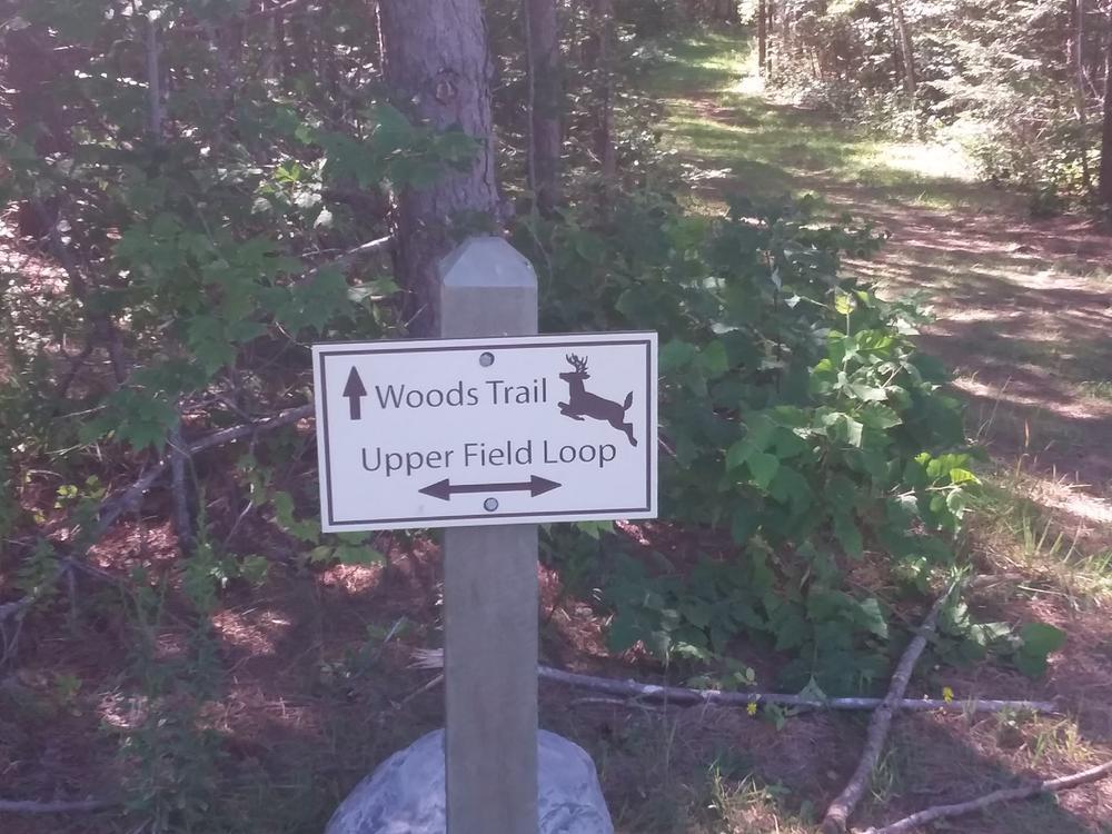 Edge Trail: This is a 0.4 mile trail over mown grass. The Edge Trail connects the Sign Path, lower parking lot, Woods Trail, and Lower Field Loop. Skirting the perimeter of the scenic area, the Edge Trail passes through both field habitat and 'edge' habitat along the border of the woods. Look for songbirds, grasshoppers and the old stone wall along this trail.